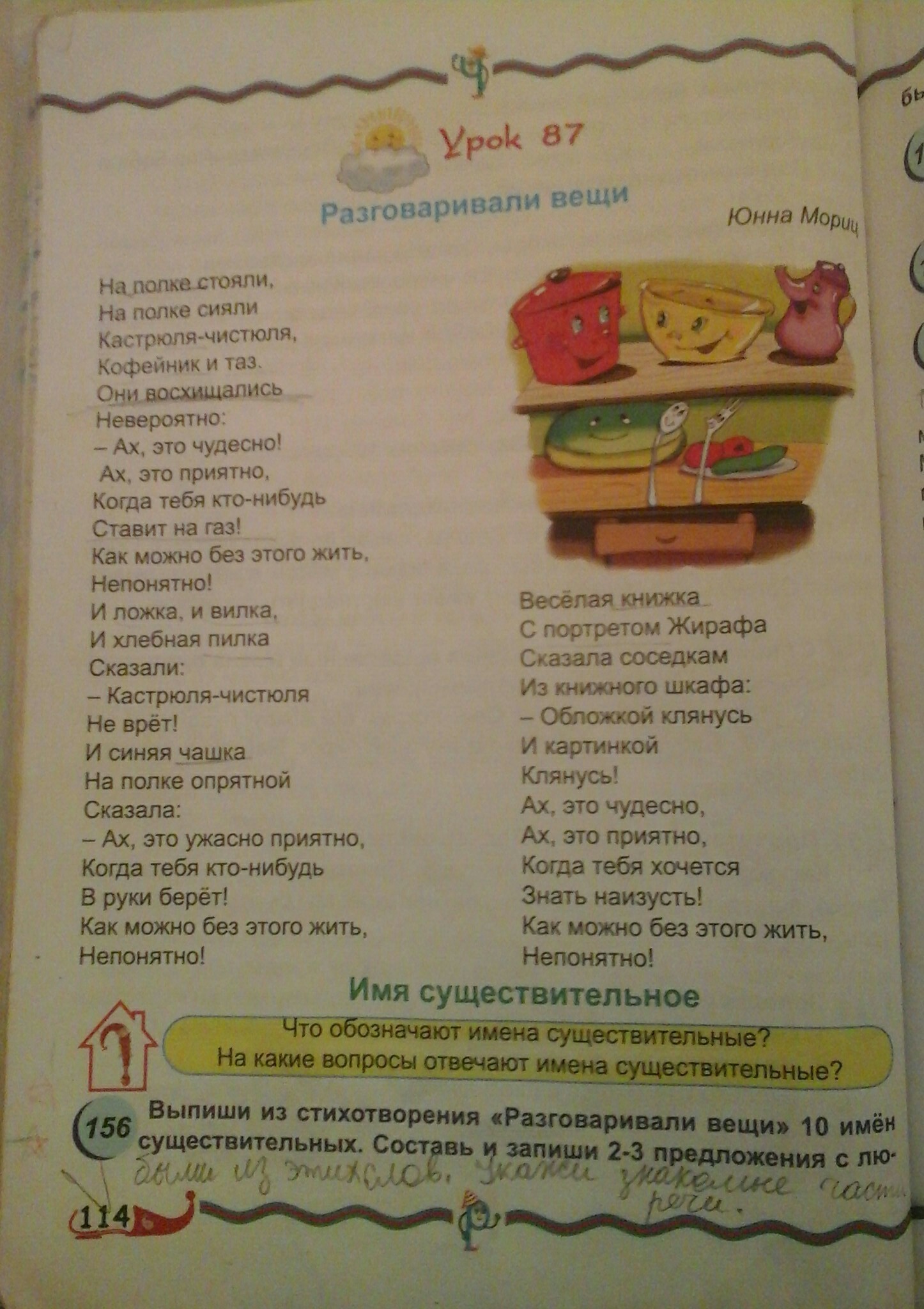 На полке, кастрюля , чистюля, кофейни, таз, газ, ложка, вилка, пилка, чашка, руки ,книжка, портретом, Жирафа соседка, шкафа книжного, обложкой, картиной.