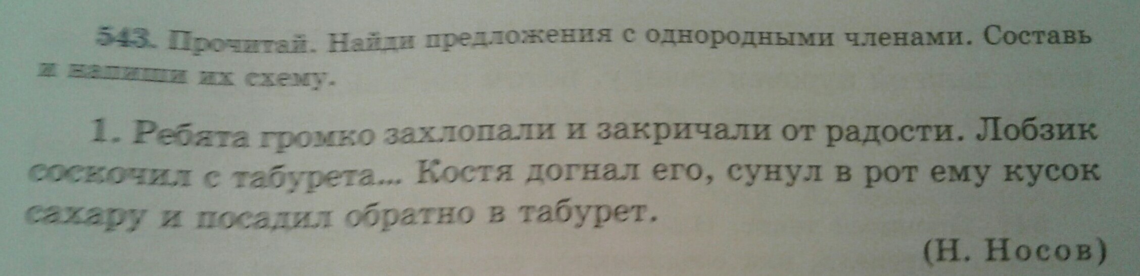 Ребята громко захлопали и закричали от радости.[ _ = и = ]...Костя догнал его,сунул в рот ему кусок сахара и посадил обратно в табурет.[ _ =,= и = ].