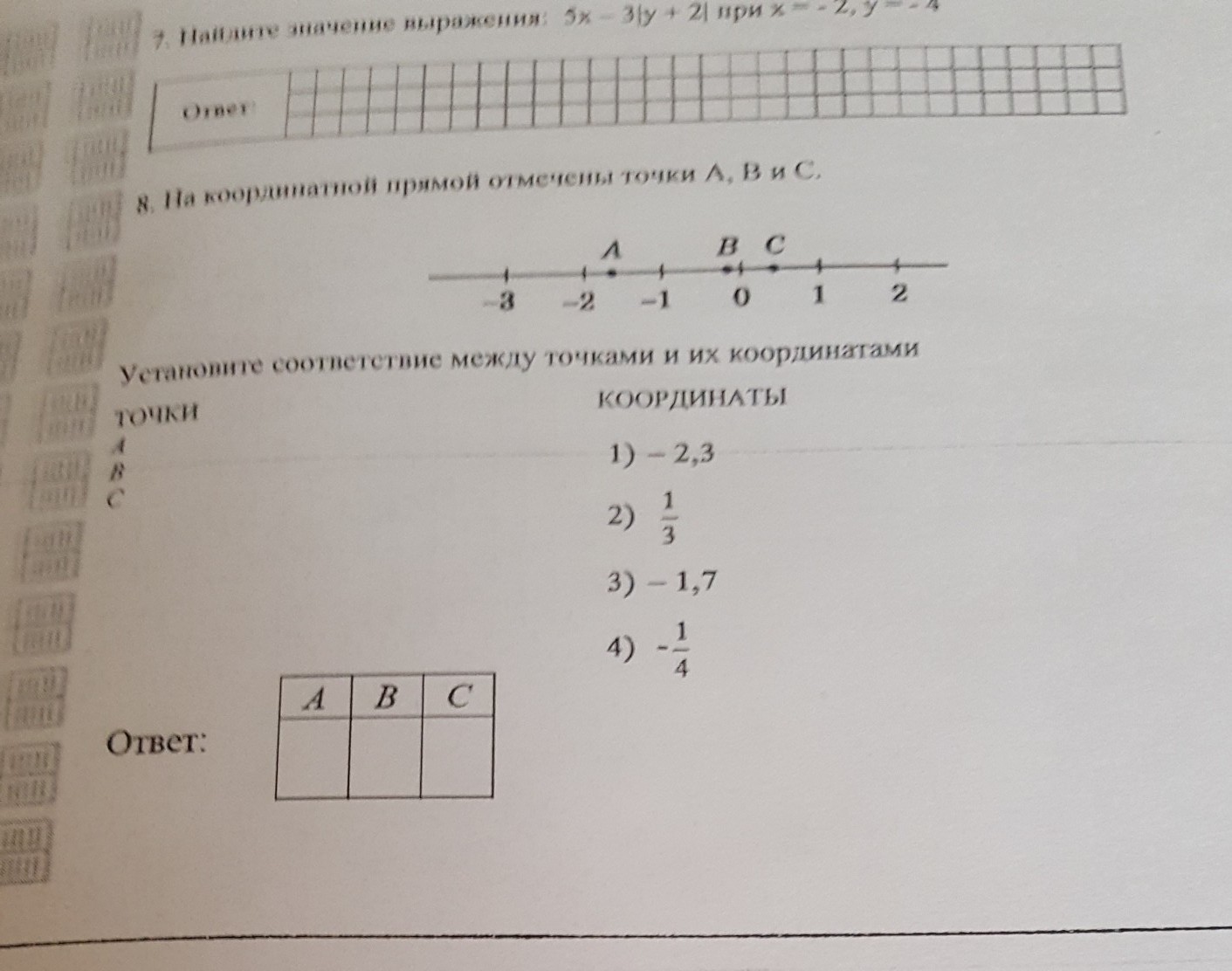 установите сотвествие между точками и их координаты