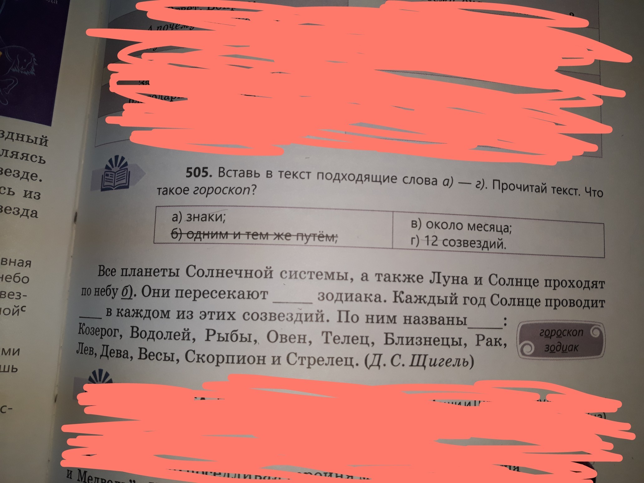 Все планеты Солнечной системы, а так же Луна и Солнце проходят по небу ОДНИМ И ТЕМ ЖЕ ПУТЁМ.Они пересекают ЗНАКИ зодиака.Каждый год Солнце проводит ОКОЛО МЕСЯЦА в каждом из этих созвездий.По ним названы 12 СОЗВЕЗДИЙ: