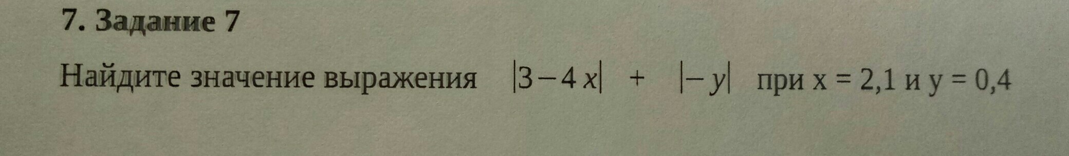 |3-4*2,1|+|-0,4|= |-5,4|+|-0,4|= 5,4+0,4= 5,8