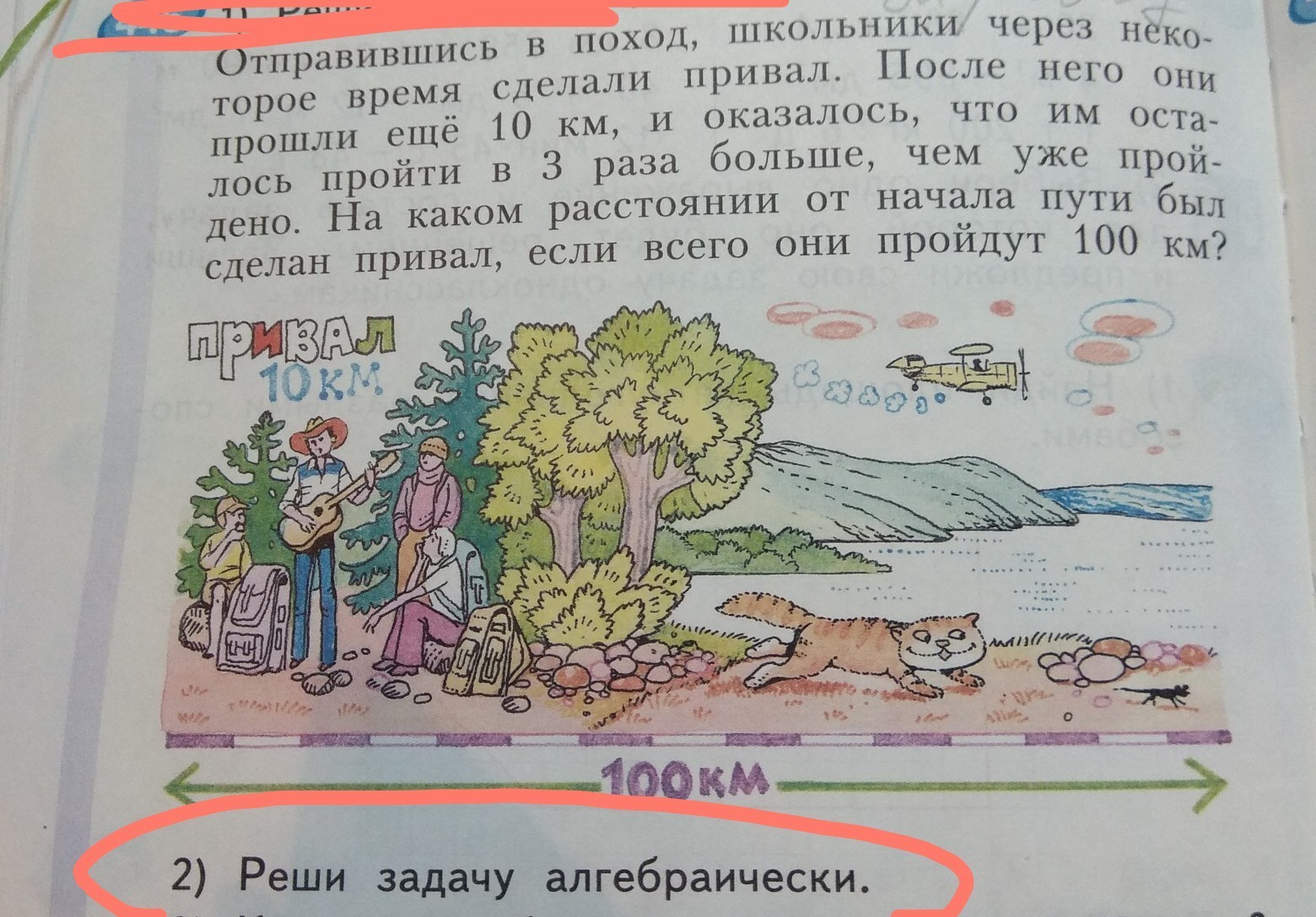 Известно что всего пути 100км, им осталось пройти (10+х)×3. Значит можно составить уровнение...(напишите ответ)