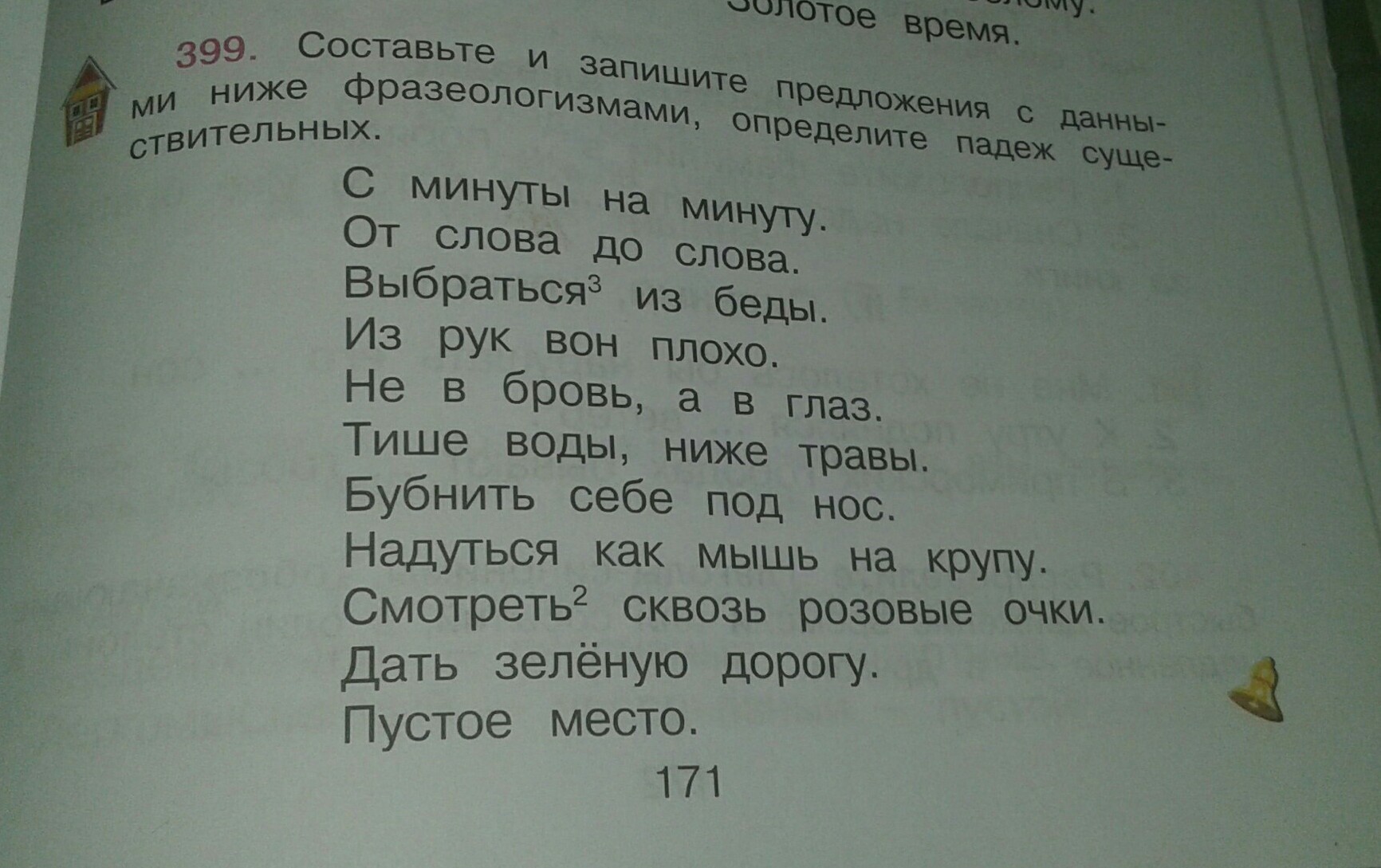 Составьте и запишите предложения с данными ниже фразеологизмами Определите падеж существительных