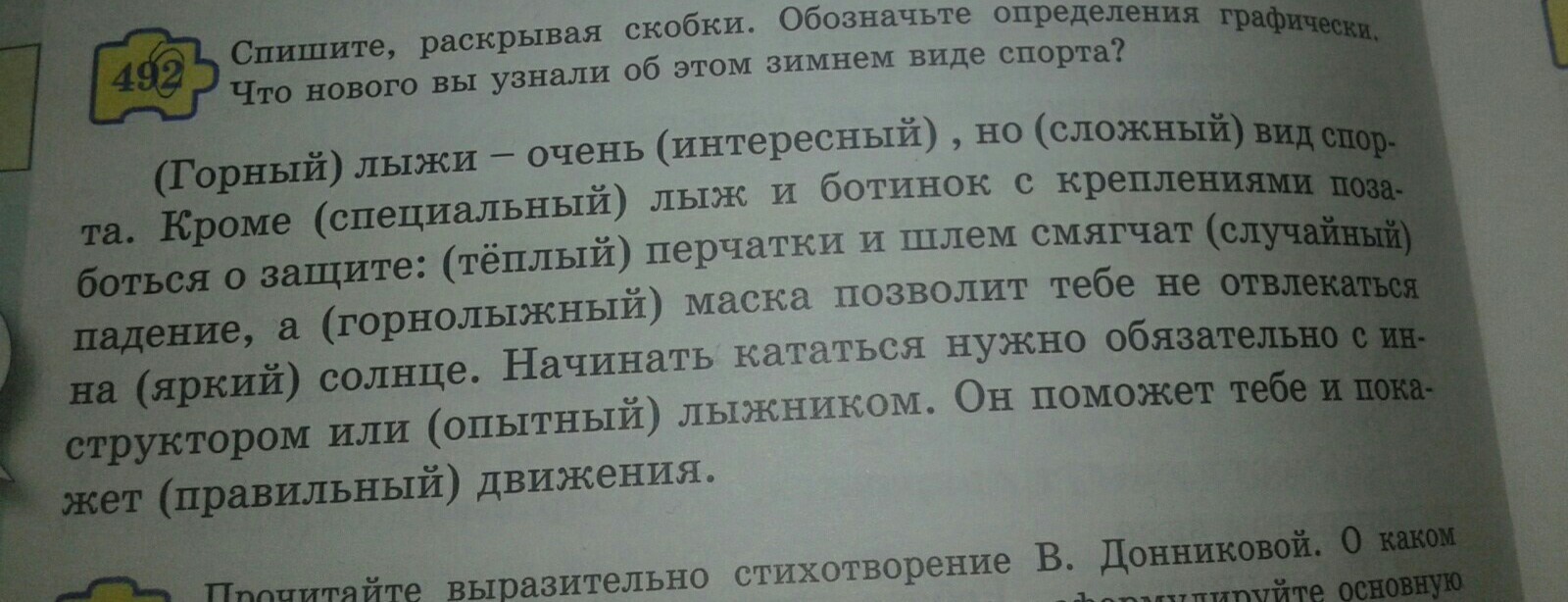 определения(~~~~~~~~) горные, интересный , сложный, специальных, тёплые , случайное , горнолыжная , яркое , опытным, правильные .