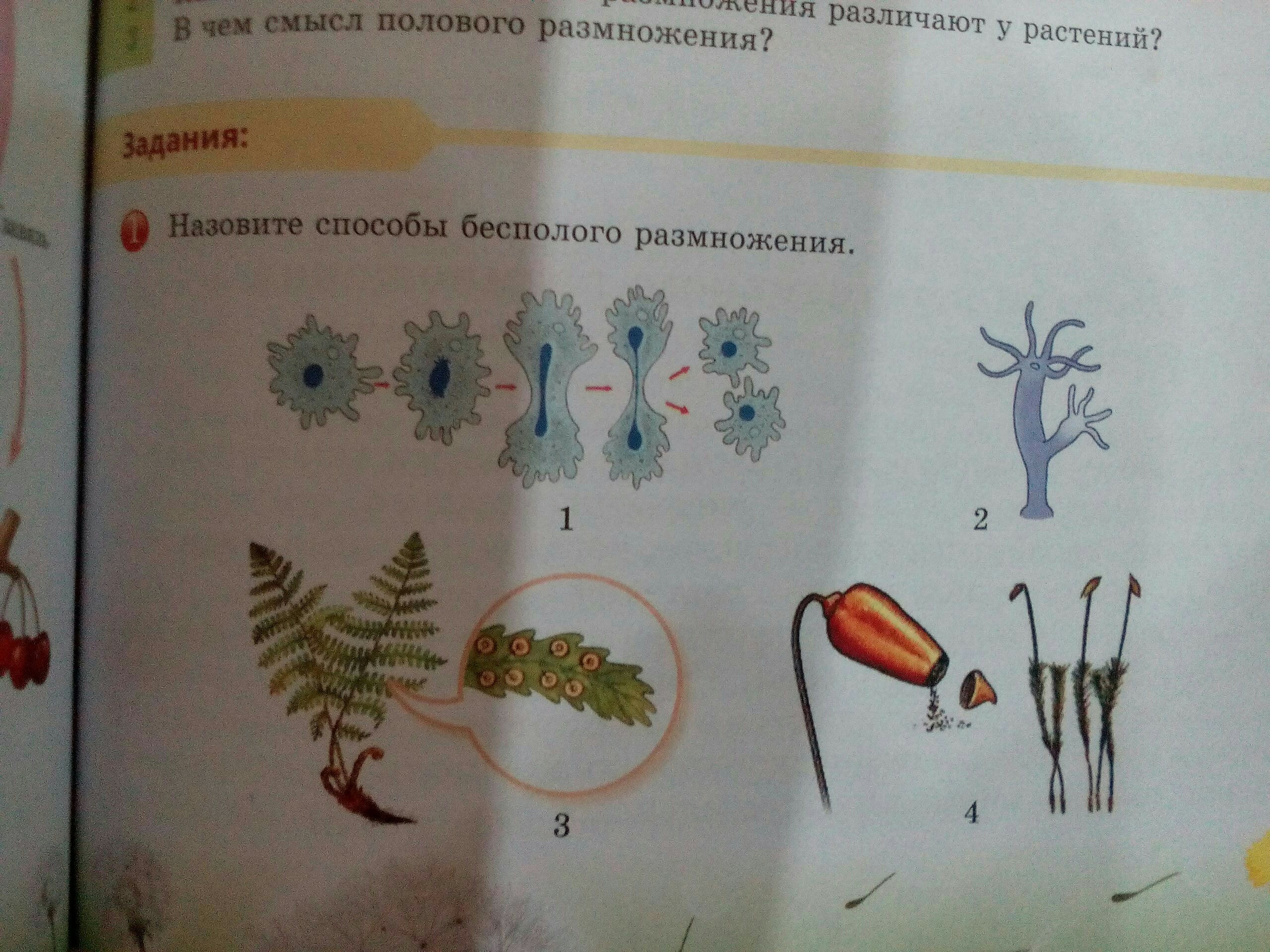 Ответ:1-деление клеток, 2-почкование, 3-спорообразование, 4-деление клетки