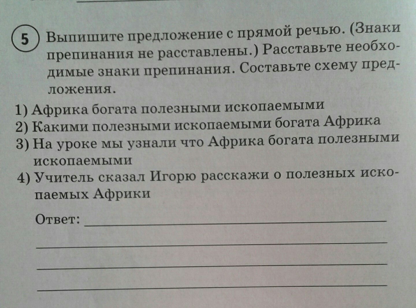 4 правильно учитель сказал Игорю расскажи о полезных ископаеых африки
