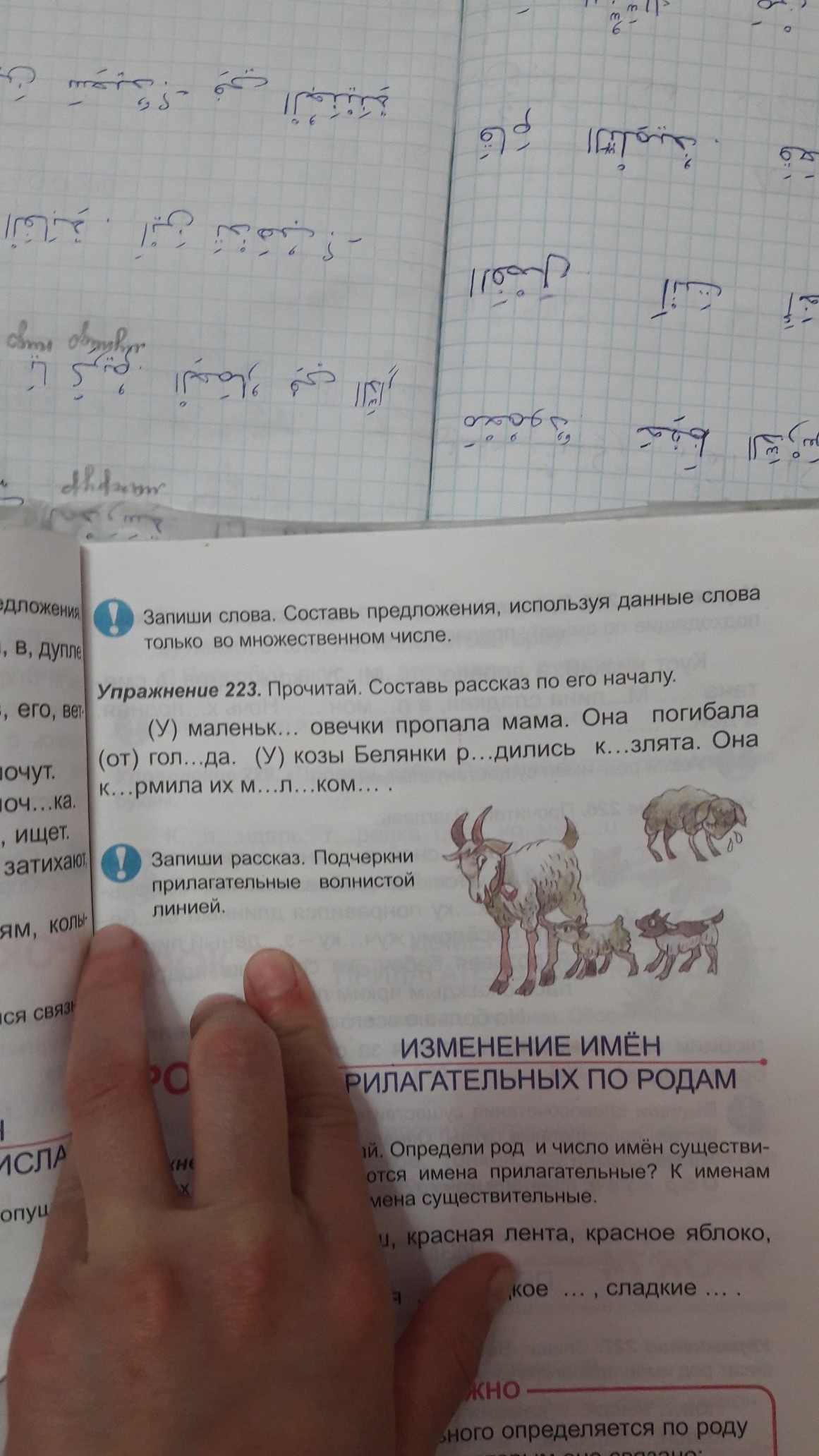 У маленькОЙ овечки пропала мама.Она погибала от голОда.У козы Белянки родились кОзлята.Она кОрмила их мОлОком