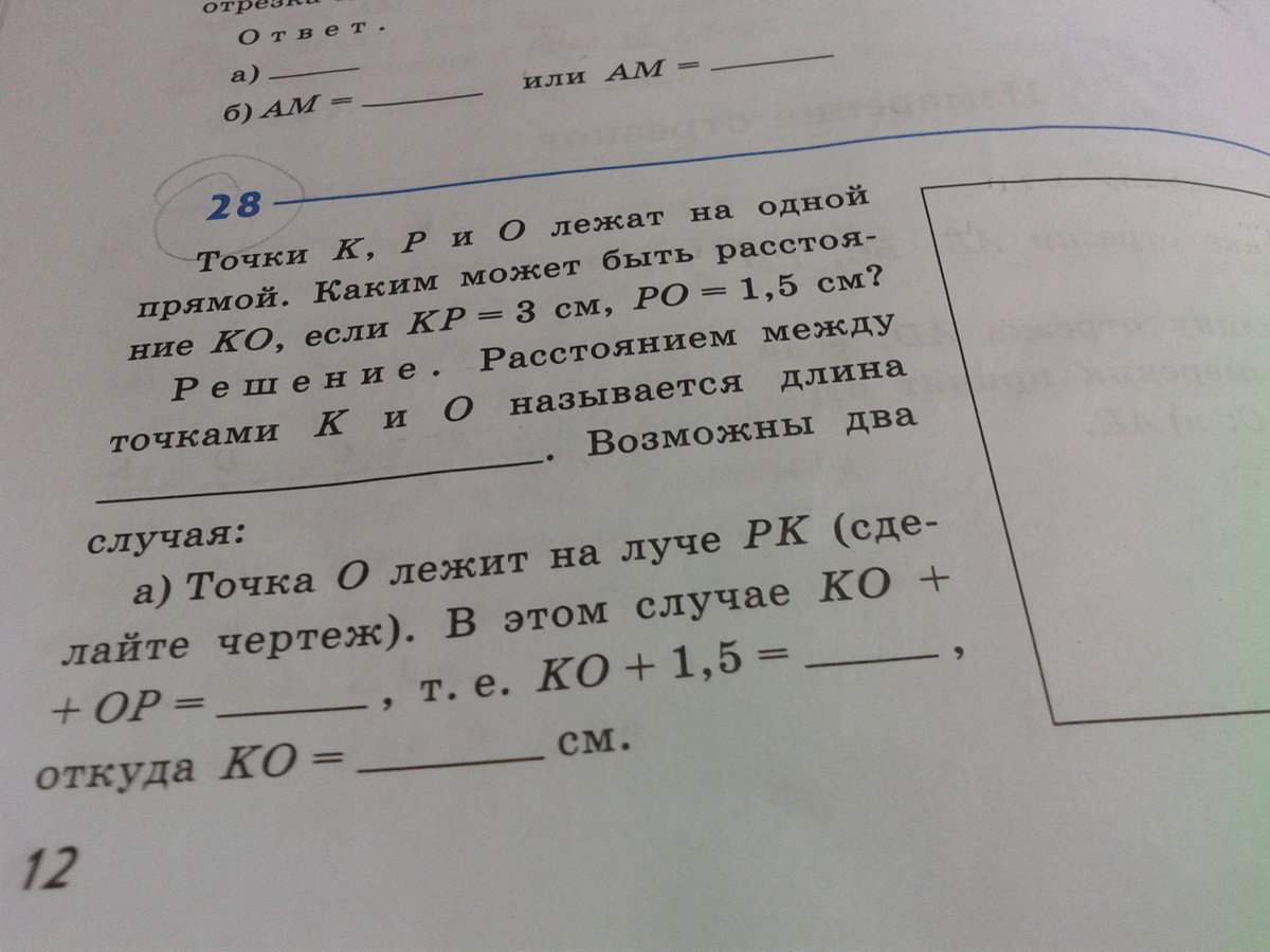 Если О лежит между К и Р, то КО=КР-ОР=3-1,5=1,5