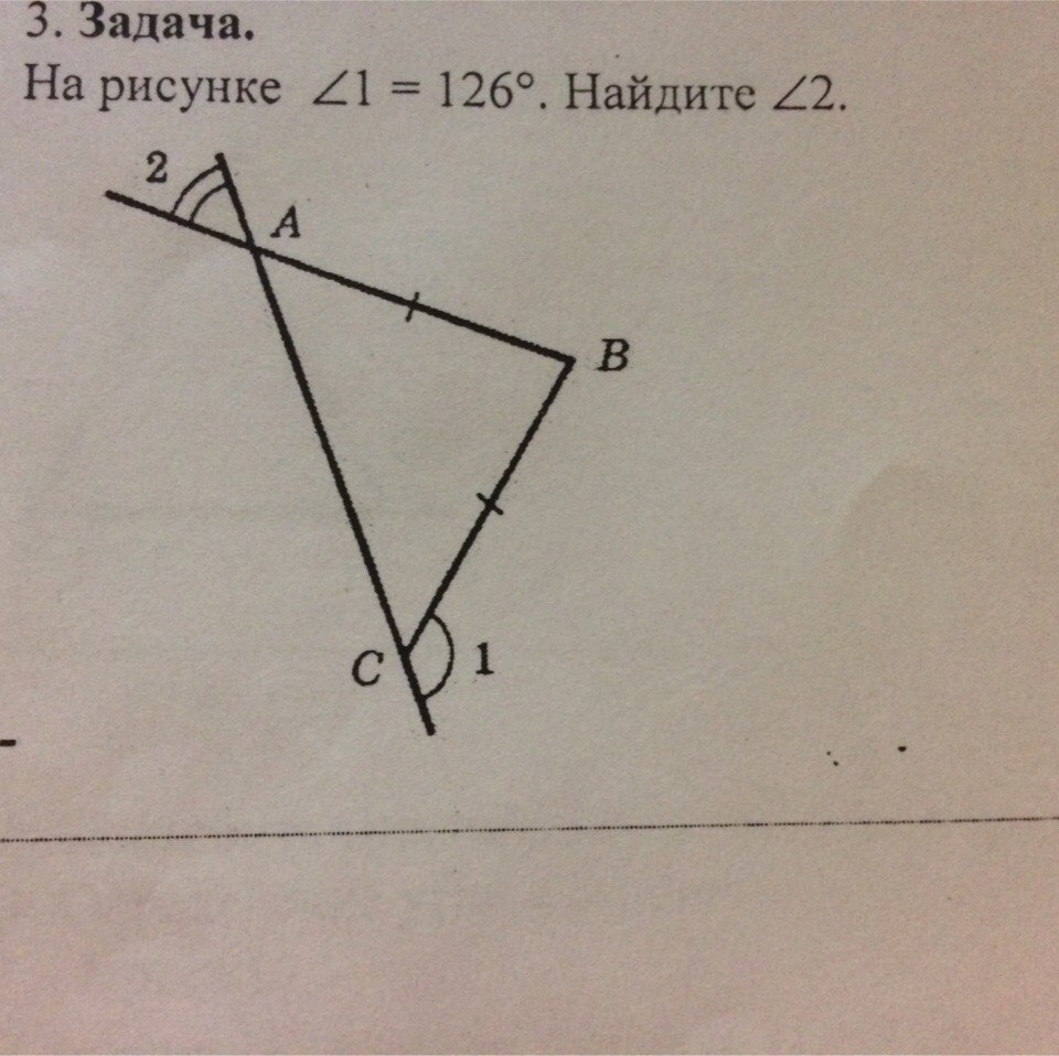 На рисунке угол1 равен 126 градусов. Найдите угол2