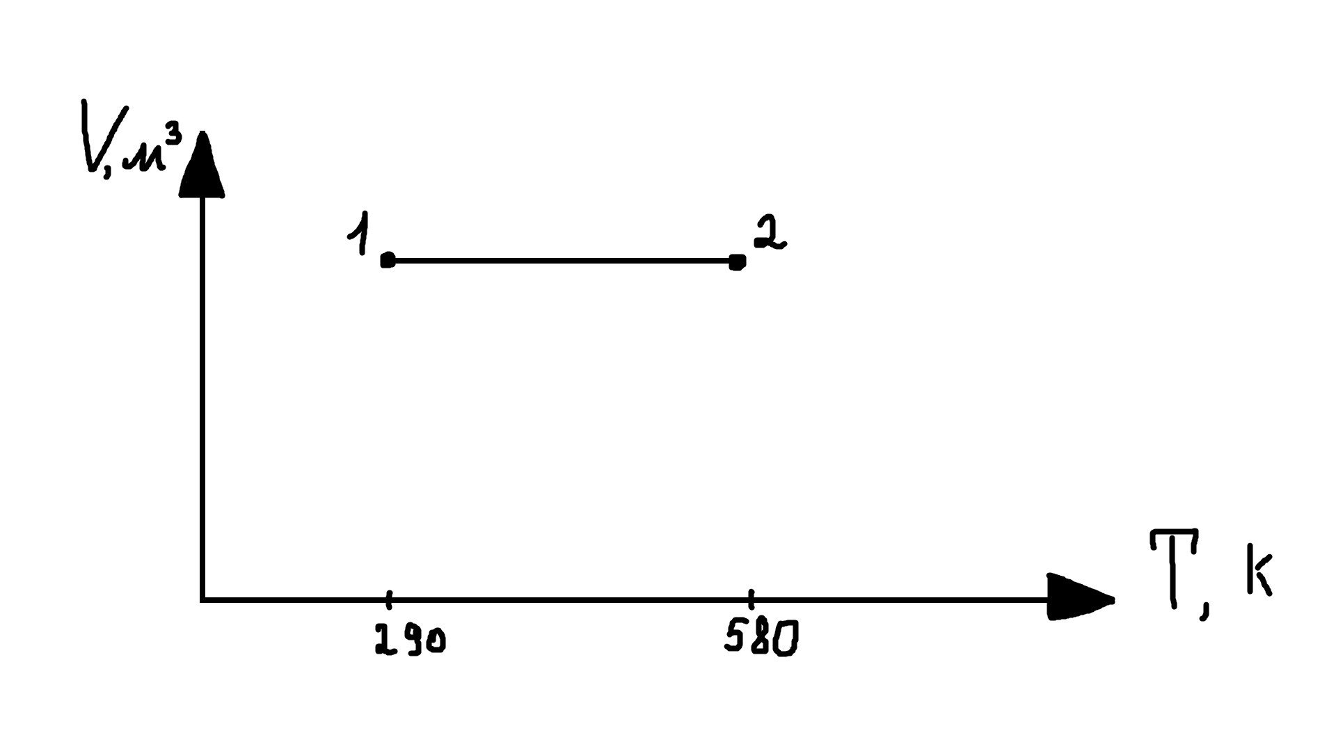 2 Определить начальную температуру газа, если при изохорном нагревании до температуры 580 К его давление увеличилось вдвое. Начертить график изопроцесса в координатных осях Т и V.