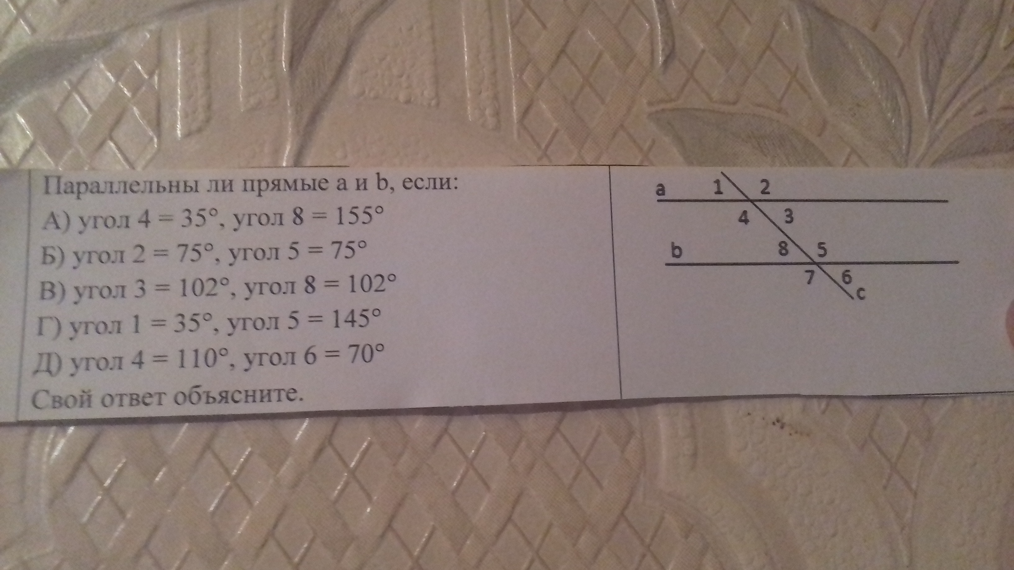 Б) Углы 2 и 5 - соответственные. Прямые параллельны, если соответственные углы равны