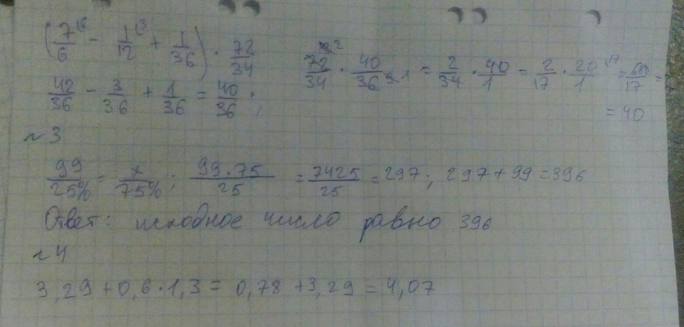 3. 99×1/4= 99×4=396