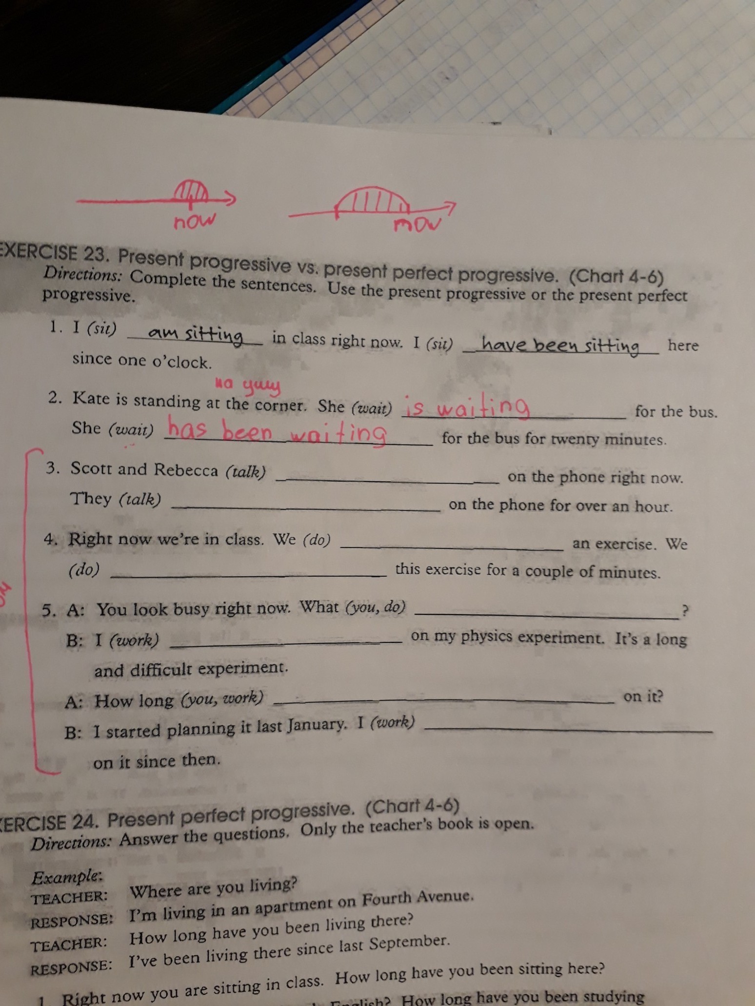 3.are talking.they have been talking.4.are doing.We have been doing 5.are you doing.am working.have you been working.have been working