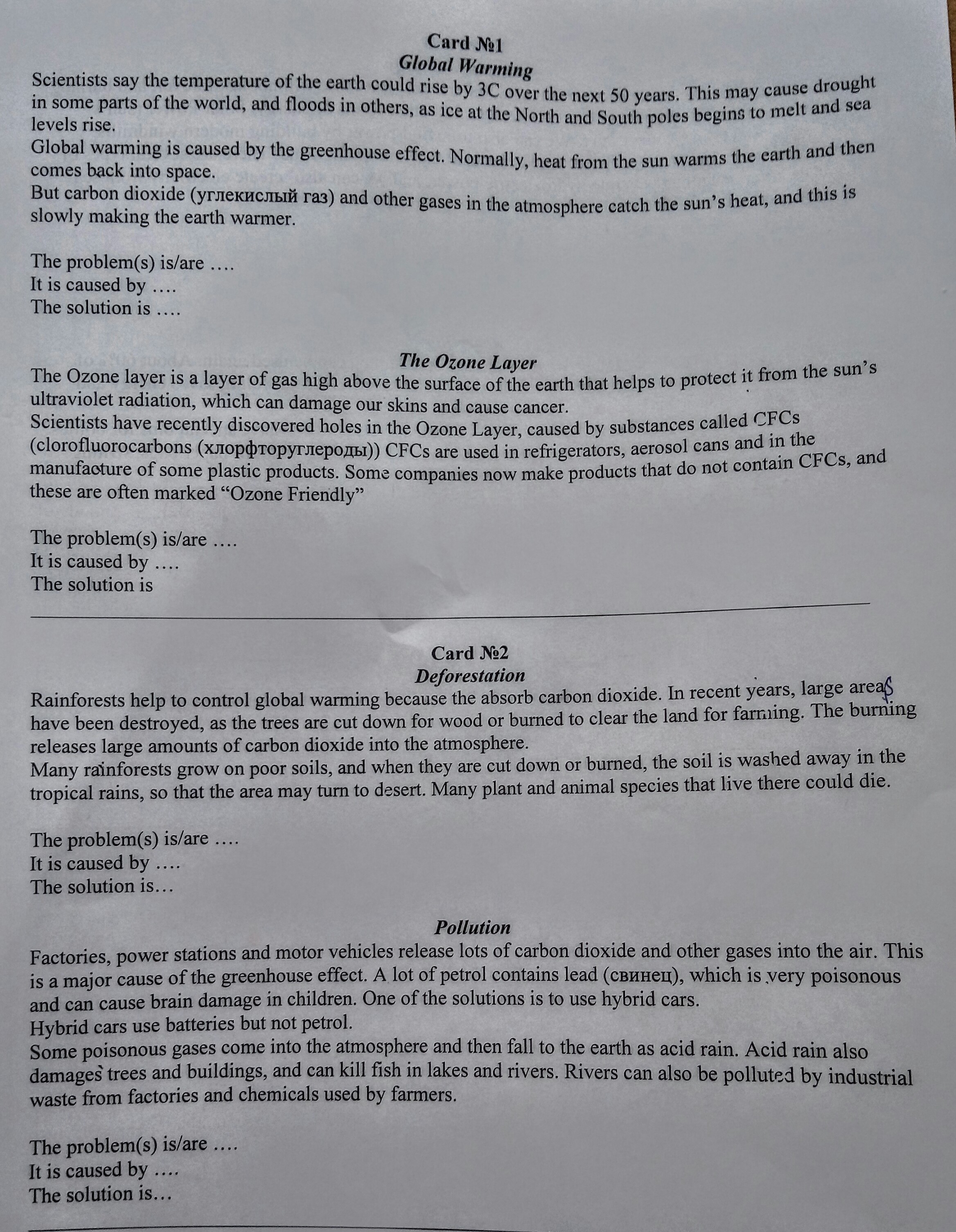 А можете еще помочь пожалуйста с "Pollution", "The Ozone Layer", "Deforestation", "Pollution",???) Просто больше не к кому обратиться..