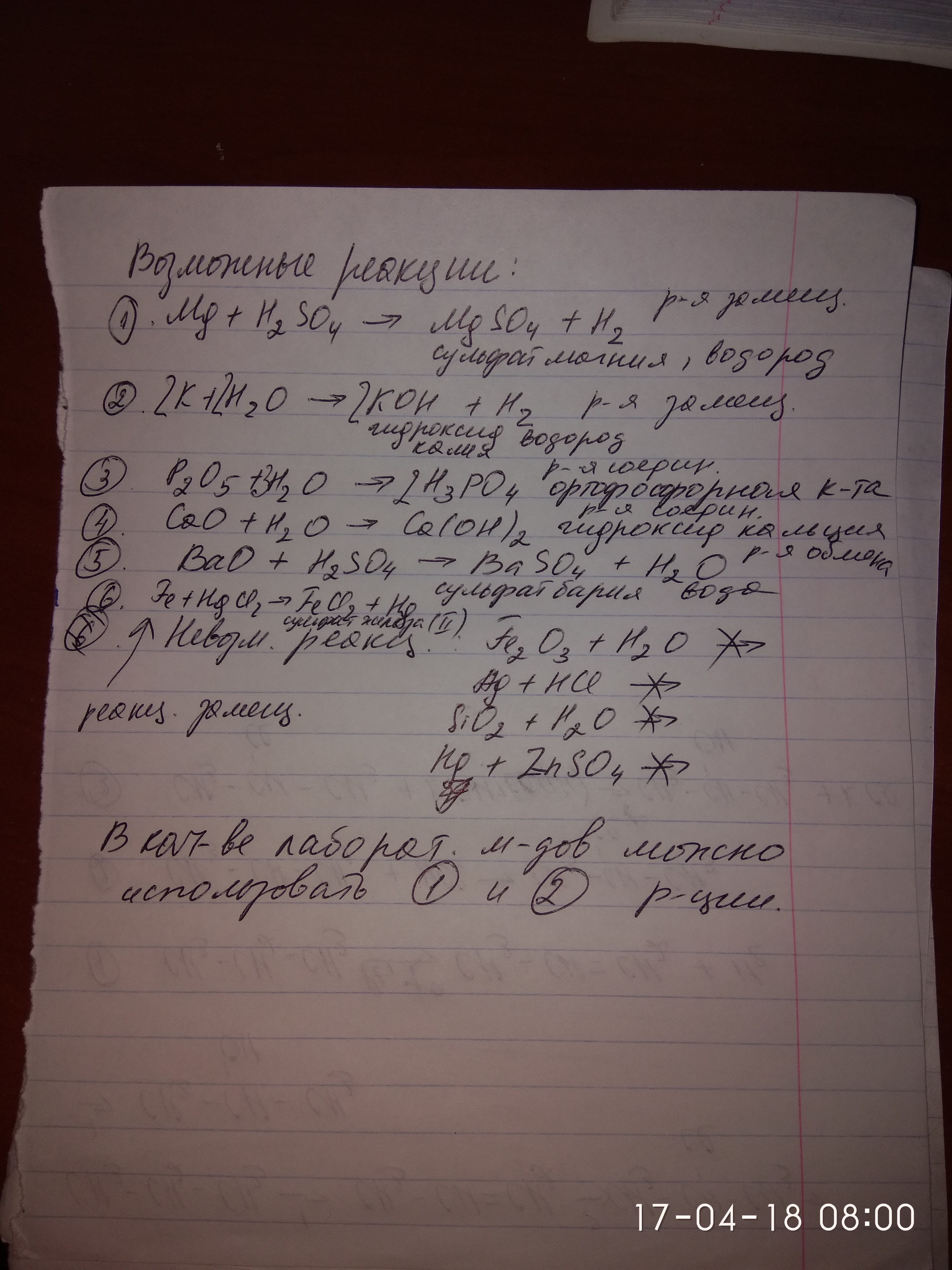 Какие из реакций можно использовать в качестве лабораторных способов получения водорода?