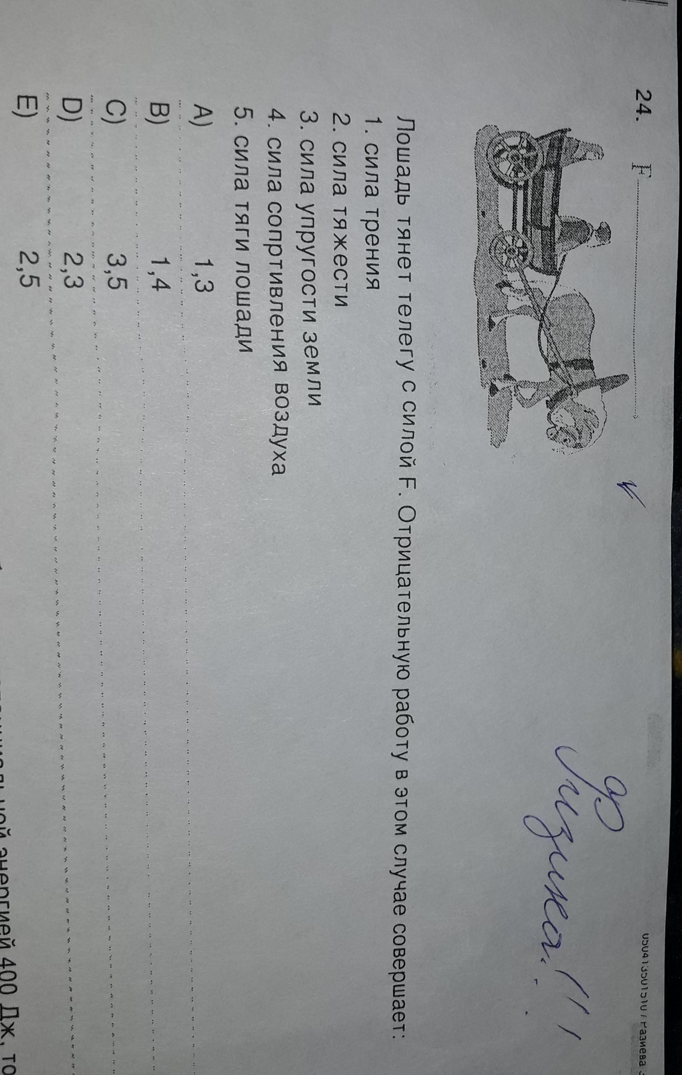 лошадь тянет телегу с силой F. Отрицательную работу в этом случае совершает: