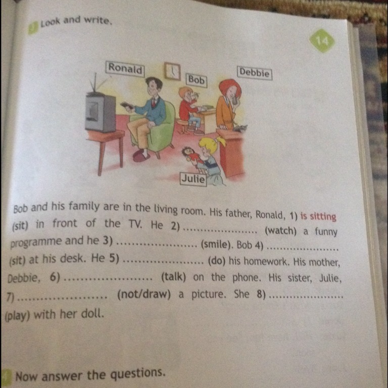 4)is sitting