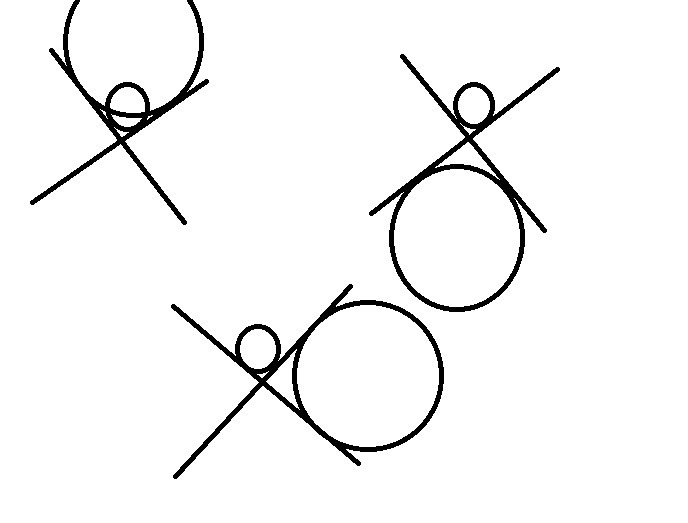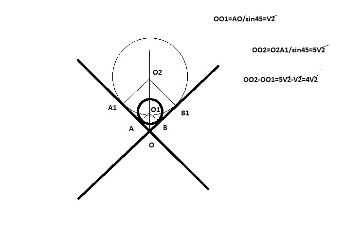 Две взаимно перпендикулярные прямые имеют общую точку О. Окружности, радиусов равны 1 и 5, касаются обеих прямых. Чему может быть равно расстояние между центрами этих окружностей? (Рассмотрите все возможные случаи.)