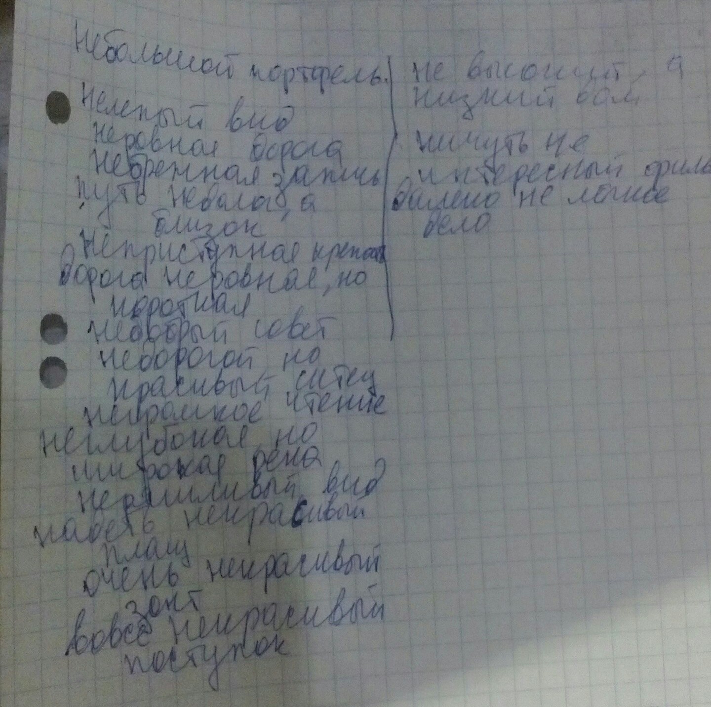 (Не)большой портфель; (не)лепый вид; (не)высокий, а низкий дом;