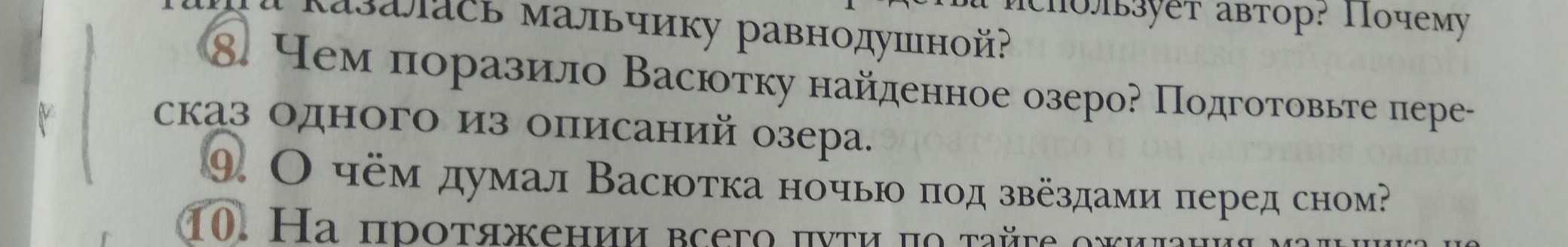 срочно!!!! ответьте письменно на вопросы 8 и 9.пожалуйста очень надо. заранее спасибо произведение "Васюткино озеро"