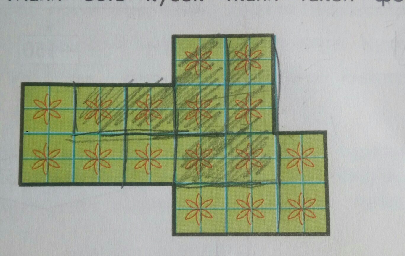 у лики и майи есть кусок ткани такой формы они хотят разрезать его на 4 равные части и сшить квадратный занавес на какие части они могут его разрезать???