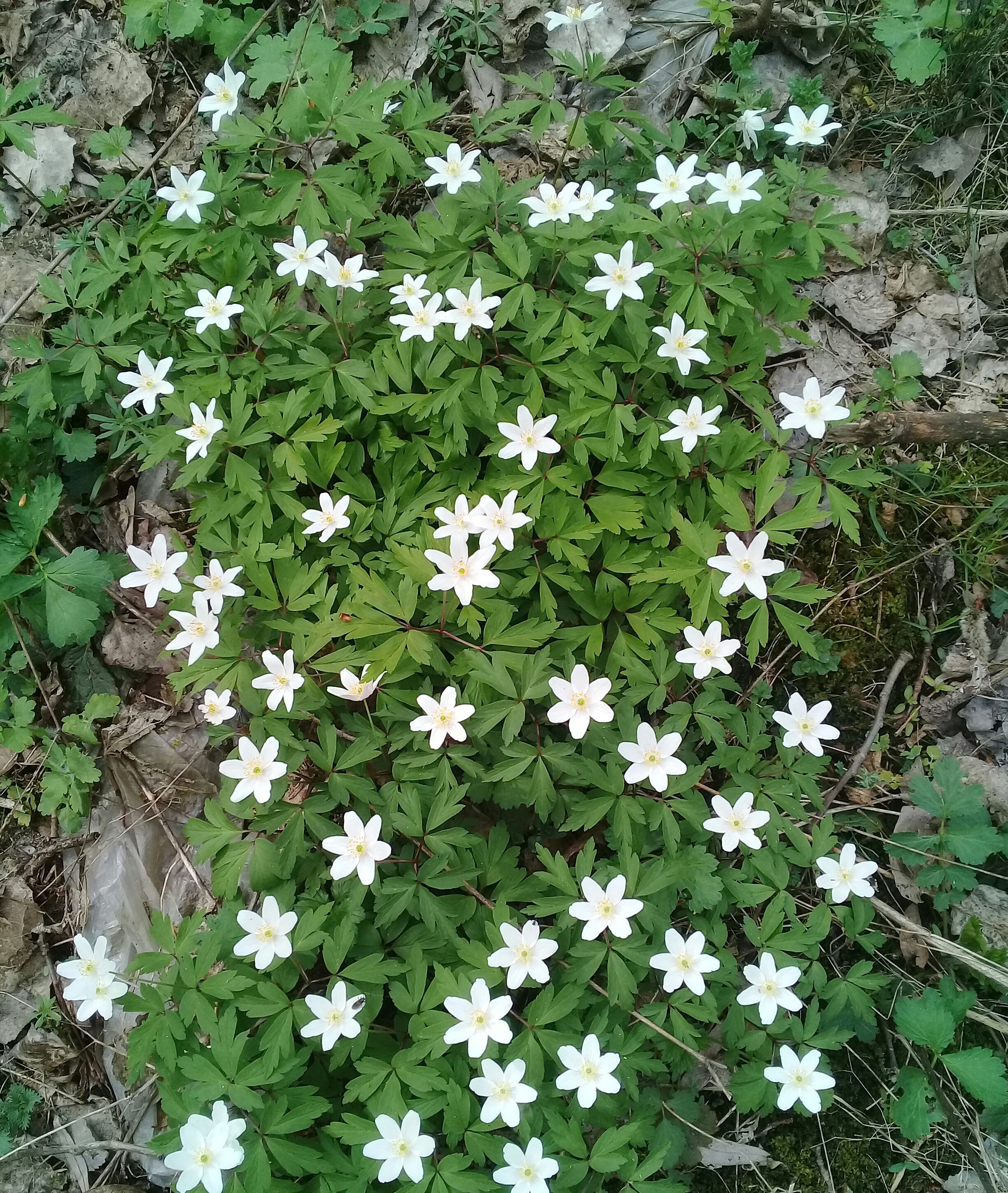 На картинке ветреница дубравная (Anemone nemorosa) из семейства Лютиковые.