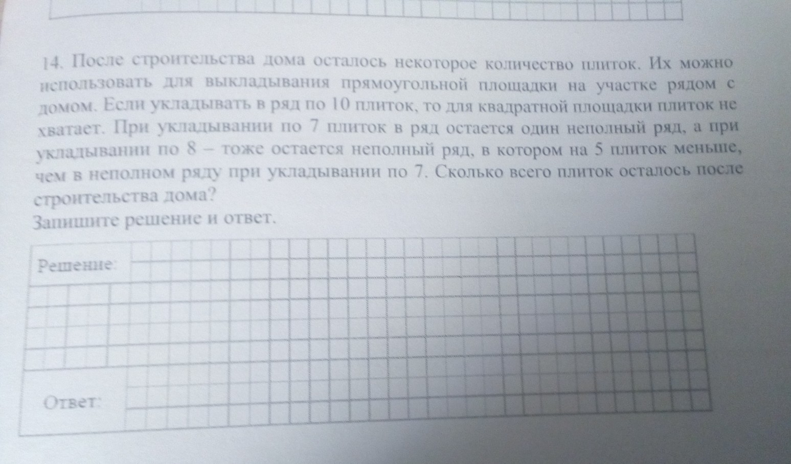 При укладке 8 плиток, в плитках по 7, образуется 1 лишняя, 16 плиток уже 2 лишние. Нам нужна разница 6-1=5. Лишние 6 плиток образуются после 5 ряда.