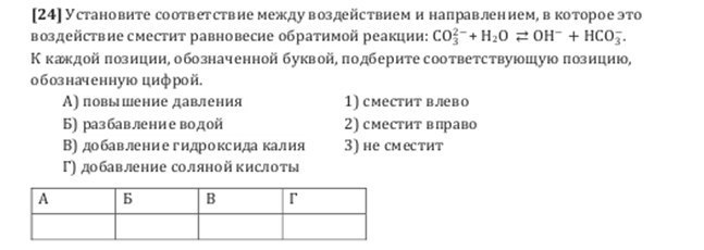 Интересует под "Г", знаю, что ответ очевиден:2. Но у меня такой вопрос: а если бы было 3 иона CO3 слева, тогда бы равновесие сместилось в сторону обратной реакции?