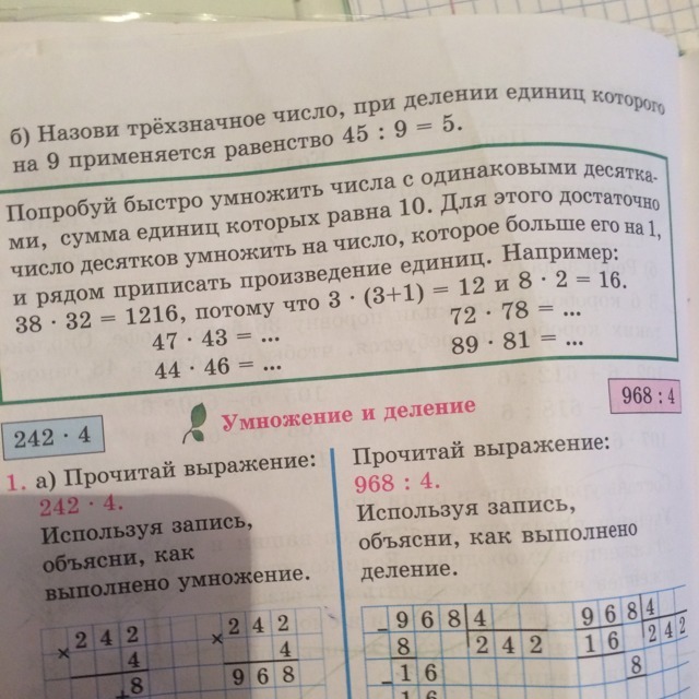 Попробуй быстро умножить числа с одинаковыми десятками, сумма единиц которыx равна 10. Для этого достаточно число десятков умножить на число, которое больше его на 1, и рядом приписать произведение единиц. Например: 38*32=1216, потому что 3*(3+1)=12 и 8*2=16