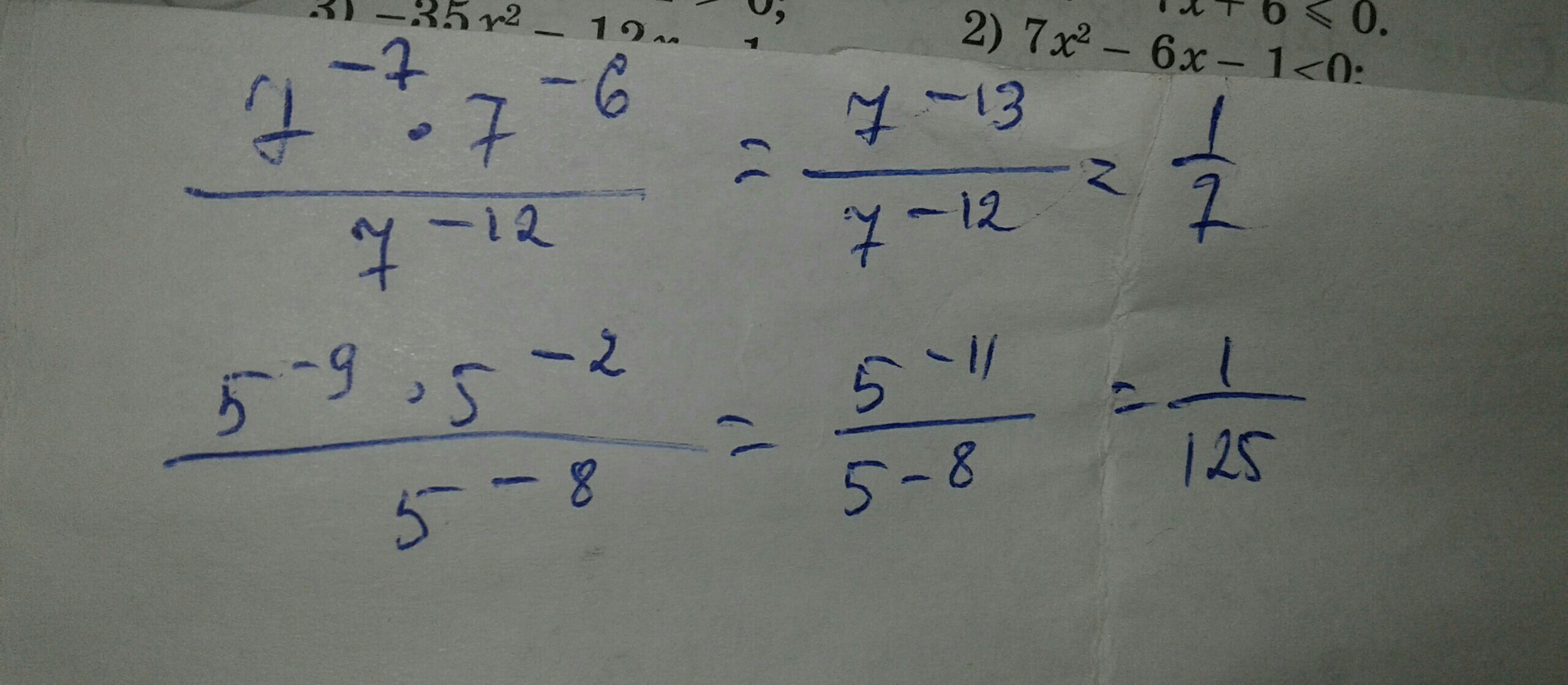 7^-7×7^-6/7^-12=7^-13/7^-12=1/7