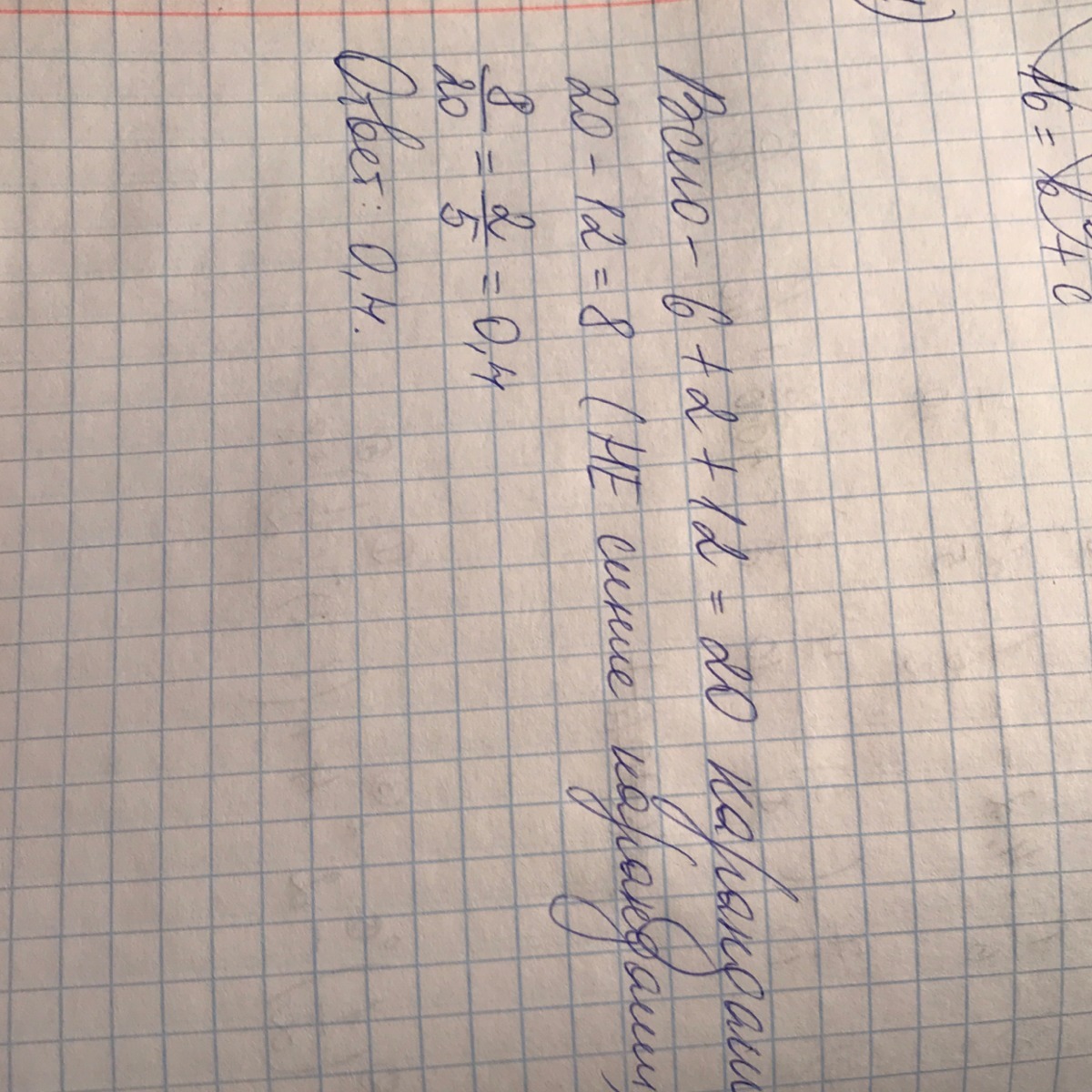 из ящика в котором лежат 6 красных,2 зеленых и 12 синих карандашей , наугад вынимают карандаш .Найдите ,какова вероятность того что это не синий карандаш.