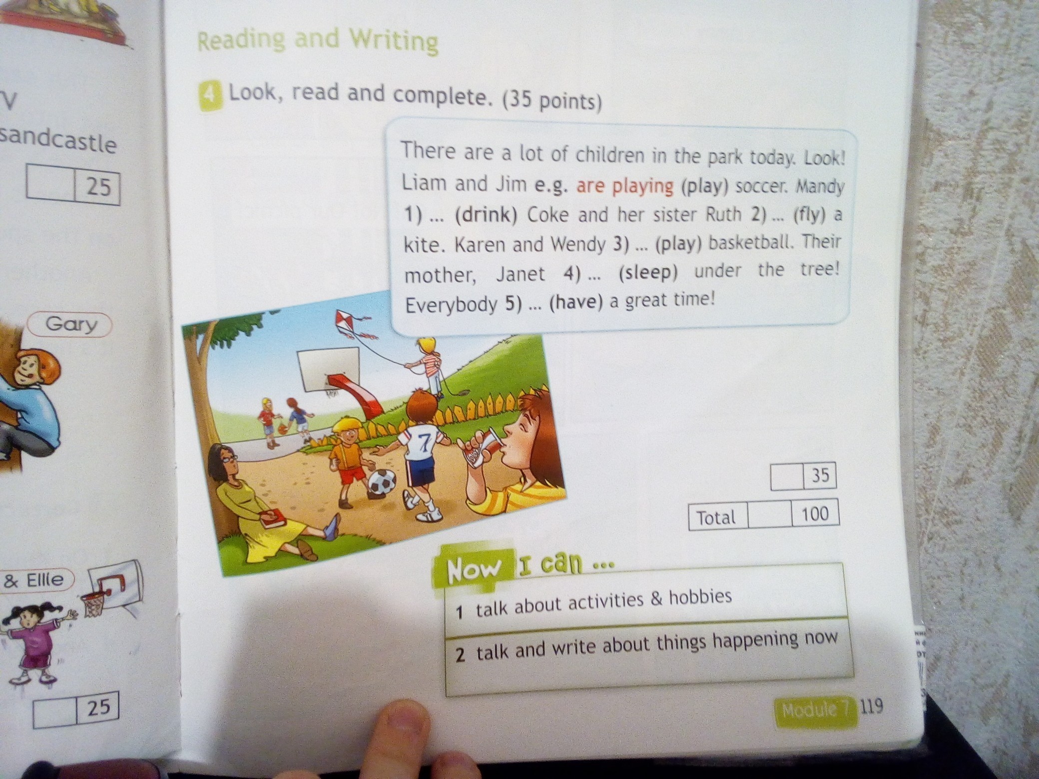 1)is drinking 2)are flying 3)are playing 4)is sleeping 5)having