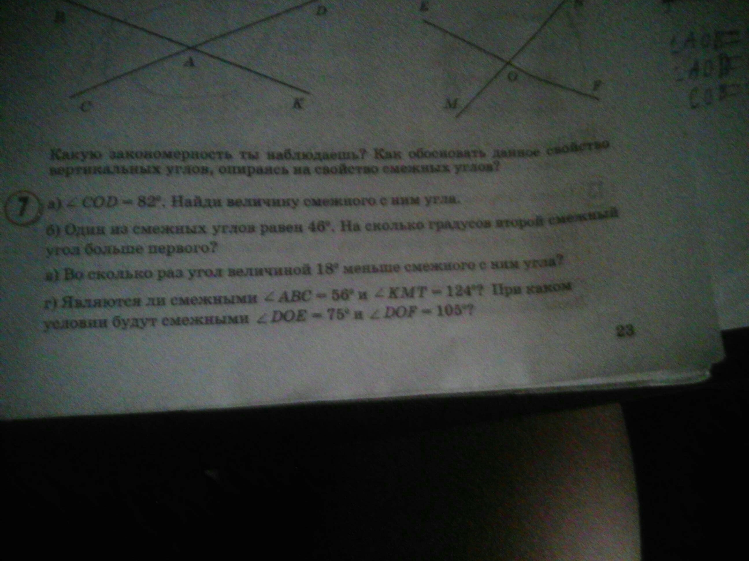 угол ц а д равен 82 градуса Найдите величину смежного с ним угла B один из смежных углов равен 46 градусов на сколько градусов 2 смежных углов больше первого в во сколько раз угол величиной 18 градусов меньше смежного с ним угла является ли смежные углы a b c равно 56 градусов и угол kmd равен 124 градуса перед каким условием будет смежными углу д о е равен 75 градусов и угол D равен 105 градусов
