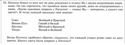 Тогда- Синий и Желтый, которые имеют по одной отгадке, - исключаем