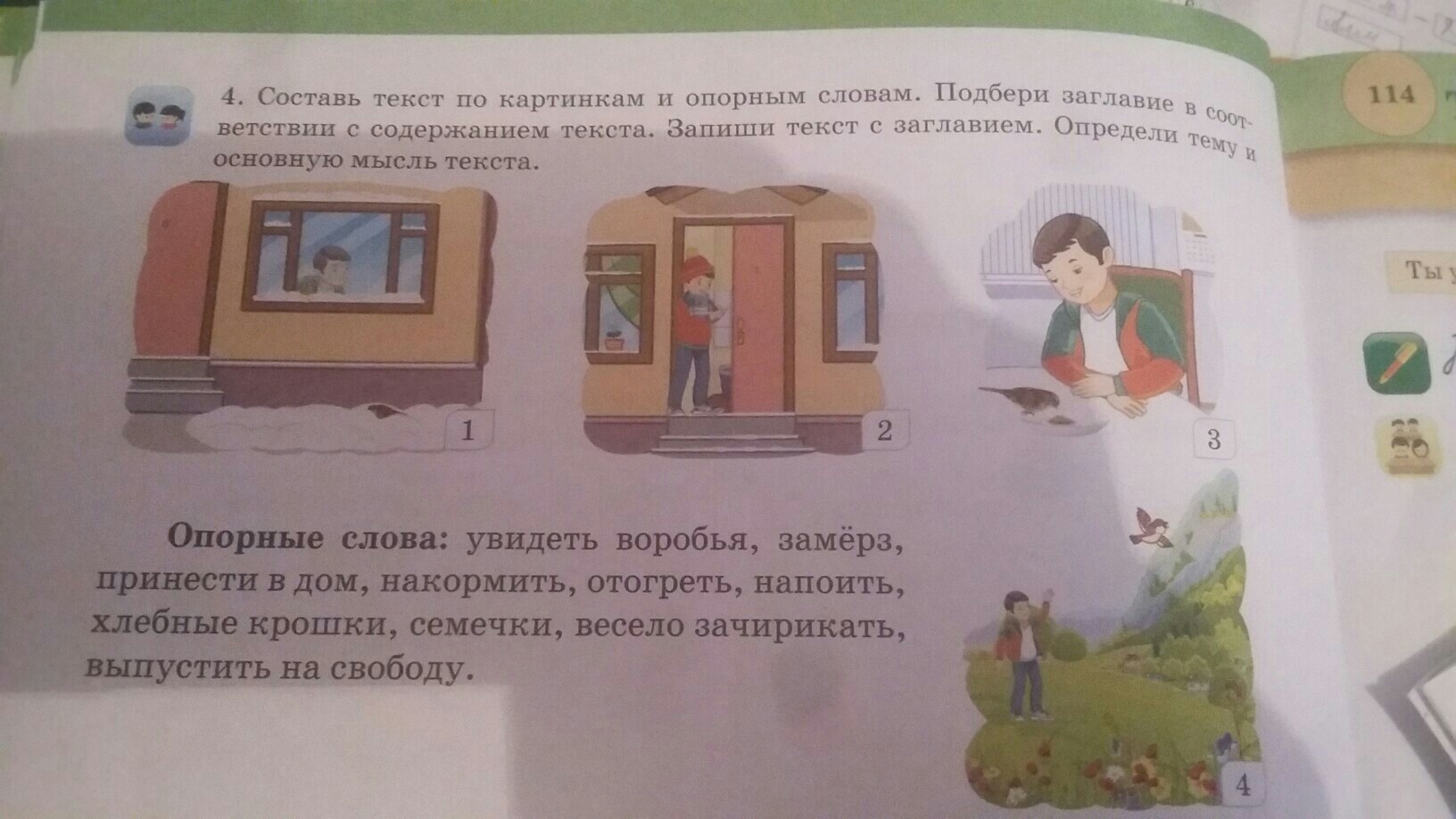 Миша увидел воробья.Ему стало жалко воробья,что он на улице замёрз в холоде.Миша принёс его в дом.Он отогрел воробья , накормил его хлебными крошками и семечками,потом напоил.Когда погода потеплела Миша отпустил воробья на свободу.Птица весело зачирикала.