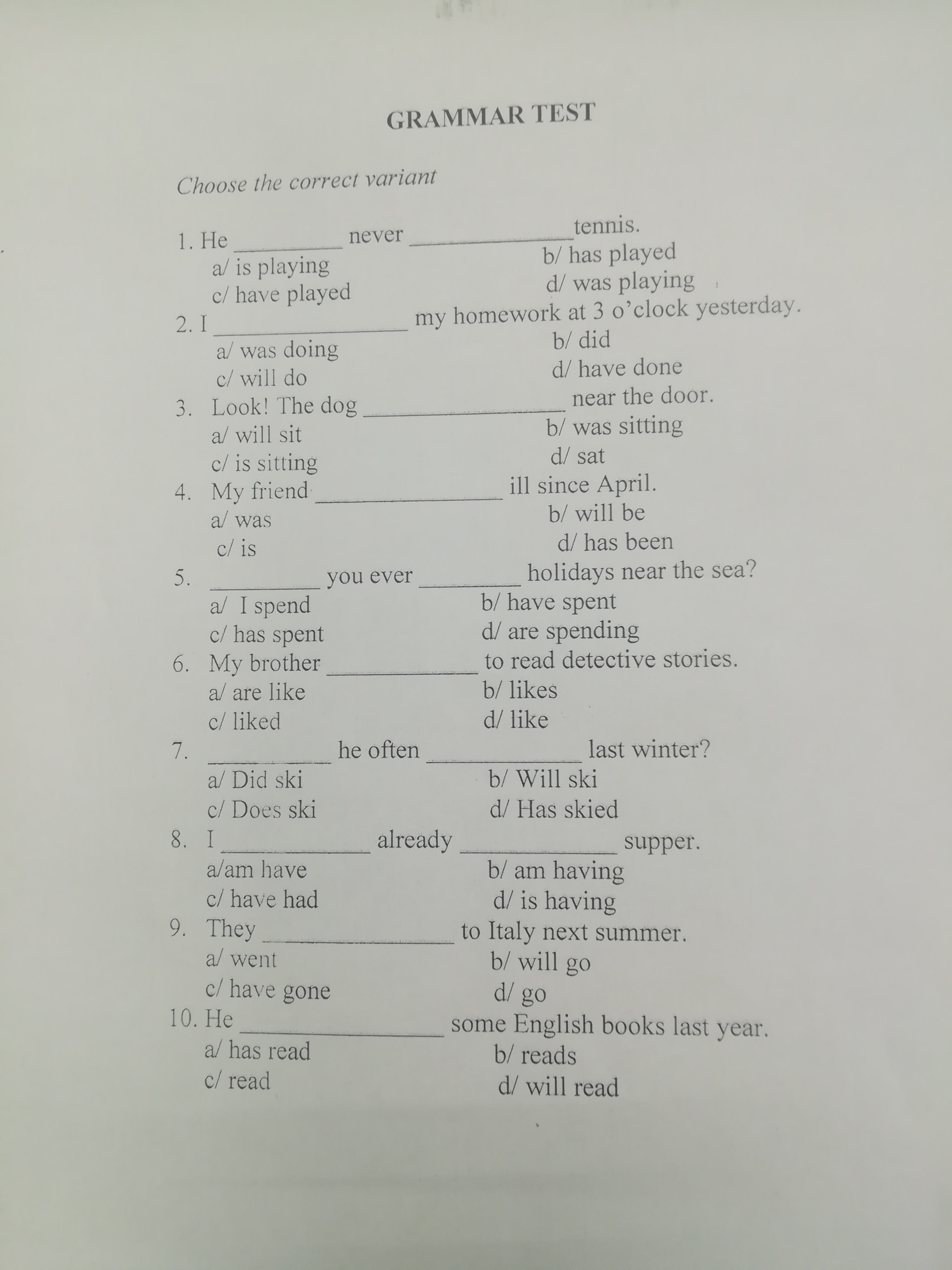 7. Did he often ski last winter? Past Simple Tense