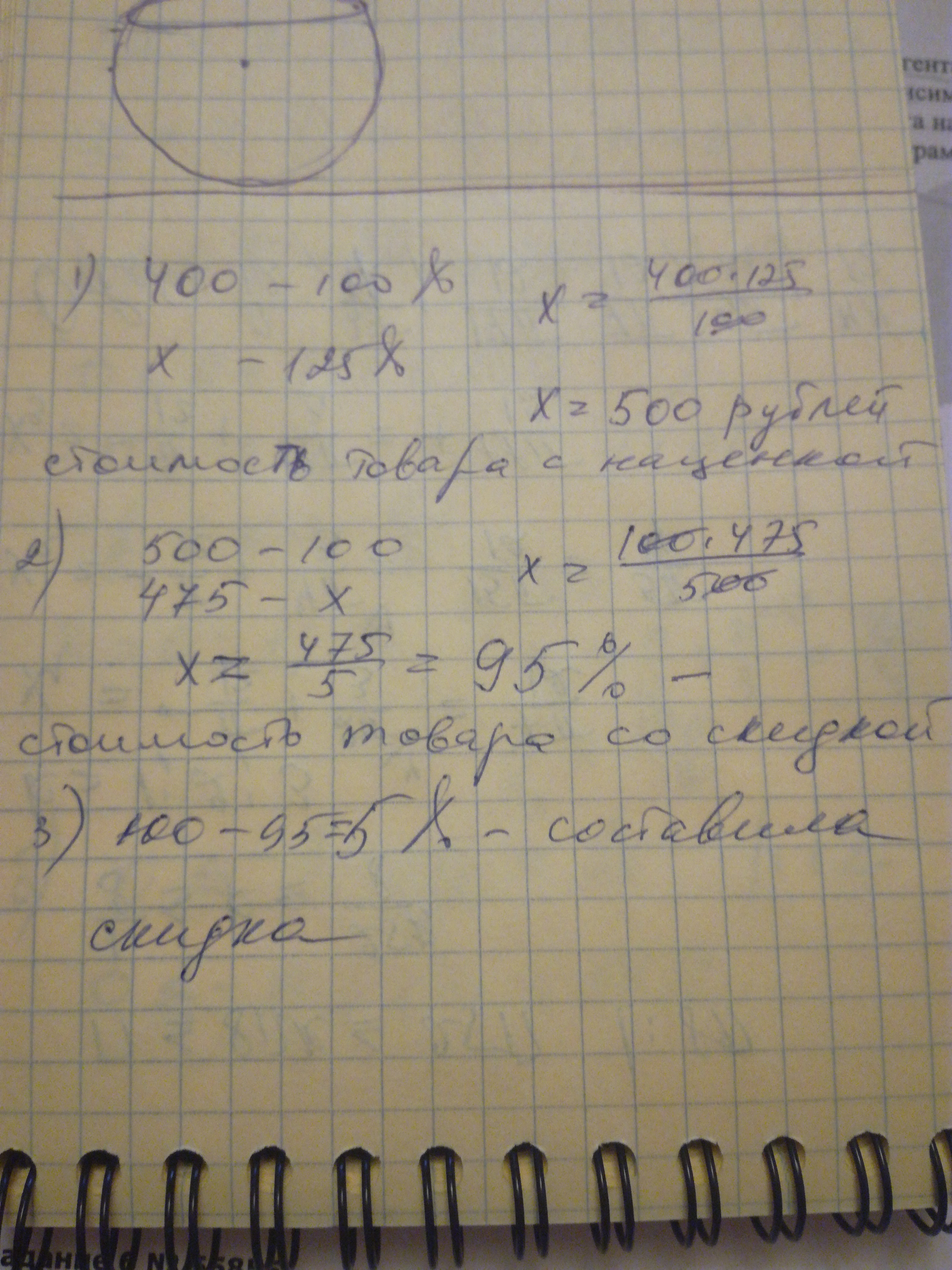 Закупочная цена товара составляля 400р.Магазин сделал наценку на этот товар в магазине в размере 25%.Во время распродажи товар был продан по цене 475р.Сколько процентов от магазинной цены составила скидка товара?