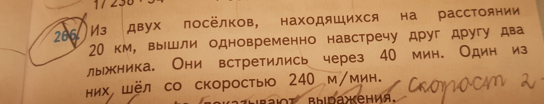2) 20.000:40-240=260(м/мин)- скорость 2-го лыжника