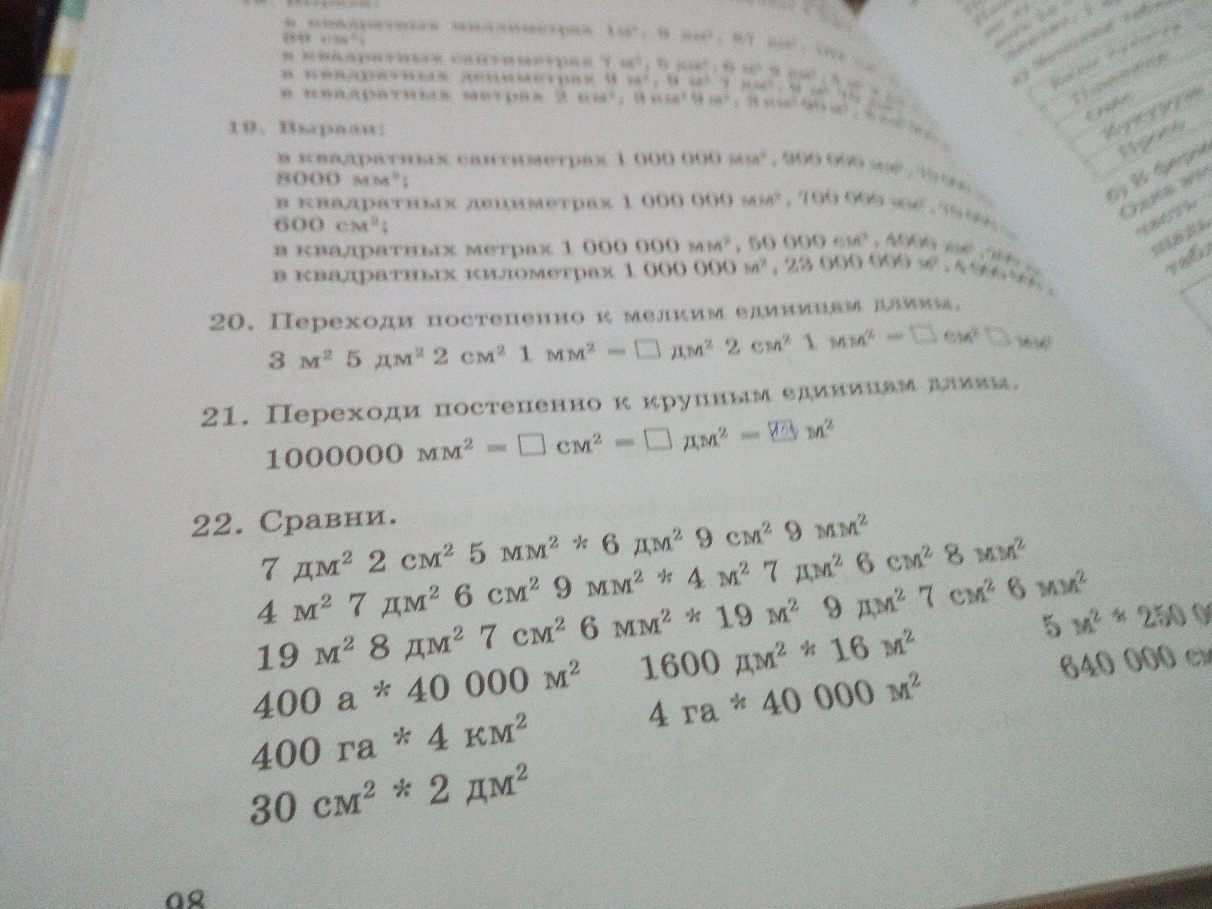 1000000мм2=10000см2; 1000дм; 100м