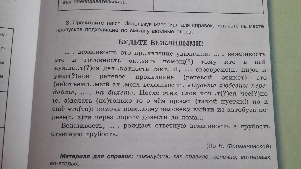 Прочитайте текст. Используя материал для справок, вставьте на месте пропусков подходящие по смыслу вводные слова.