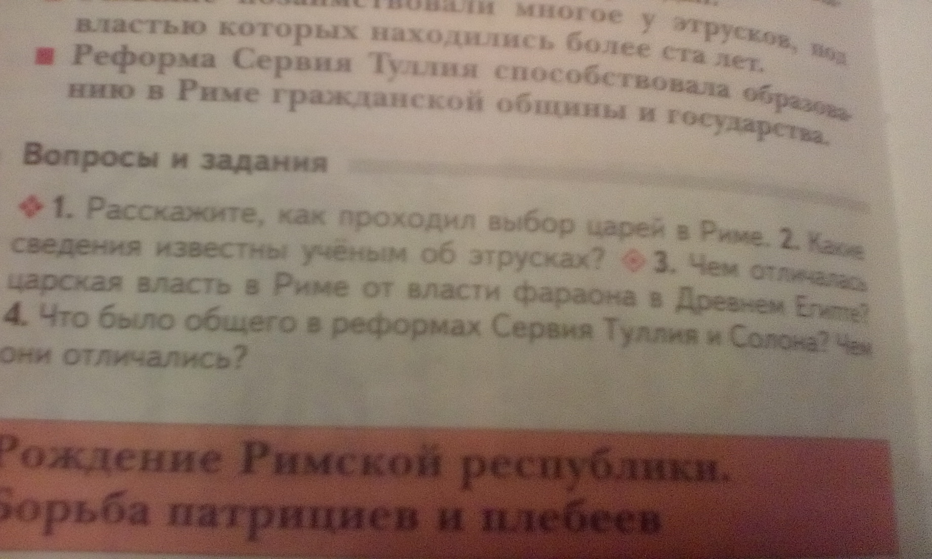 ДАЮ 29БАЛЛОВ!! 1)Расскажите,как проходил выбор царей в Риме.2)Какие сведения известны учёным об этрусках?3)Чем отличалась царская власть в Риме от власти фараона в Древнем Египте?4)Что было общего в реформах Сервия Туллия и Олона?Чем они отличались?ПОМОГИТЕ ПОЖАЛУЙСТА!ДАЮ 29 БАЛЛОВ!!!