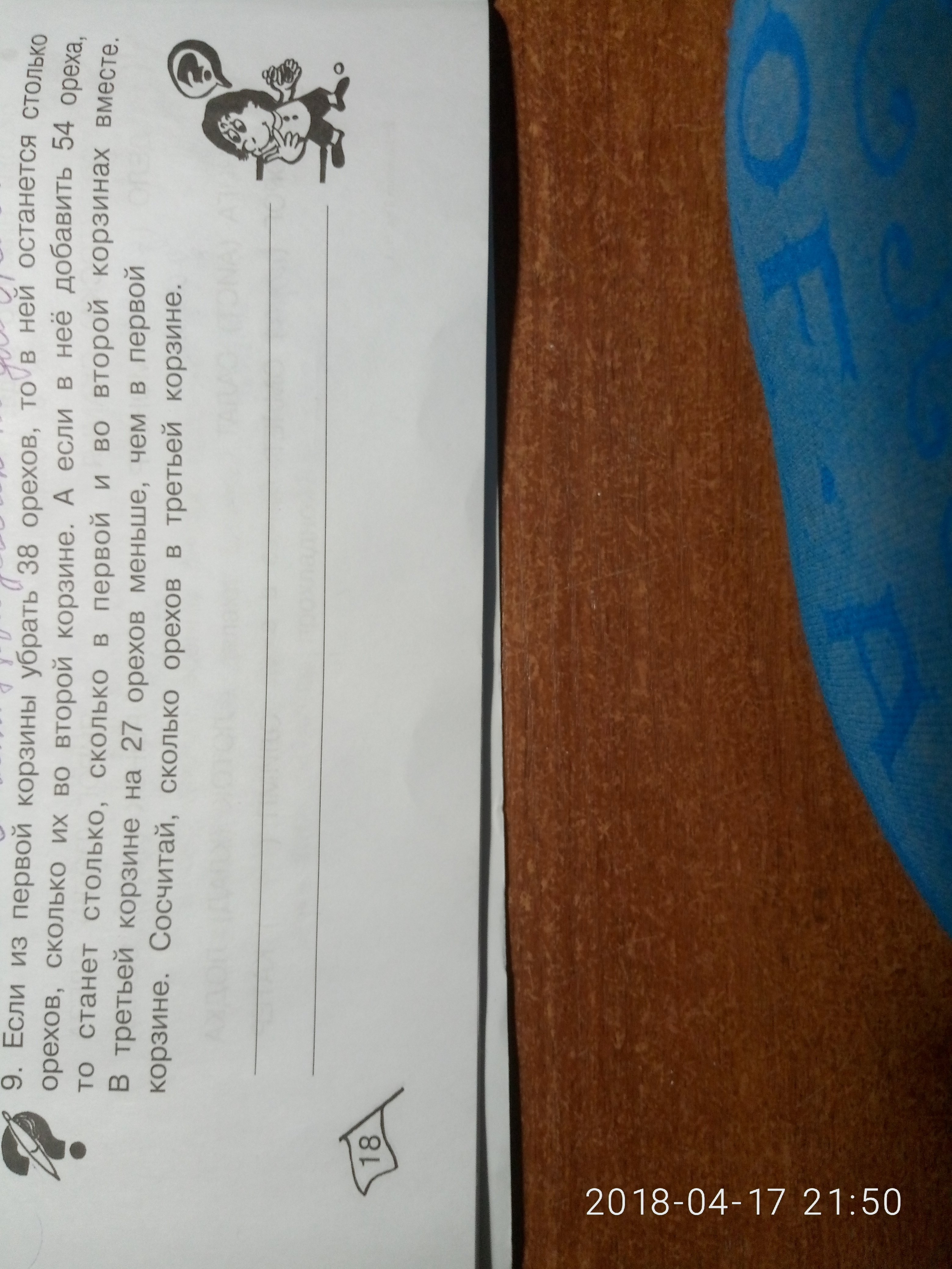 если из первой корзины убрать 38 орехов ,то в ней останется столько орехов ,сколько их во второй корзине на 27 орехов меньше , чем в первой корзине .Сосчитай,сколько орехов в третьей корзине.