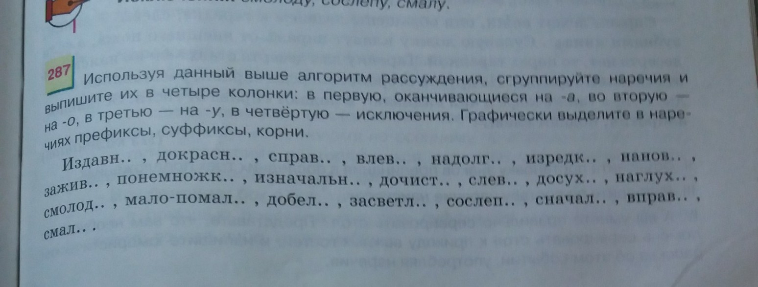 Издавна, докрасна , справа, влево, надолго, изредка, наново, заживо, понемножку, изначально, дочиста, слева, досуха, наглухо, смолоду, мало-помалу, добела, засветло, сослепу, сначала, вправо, смалу.