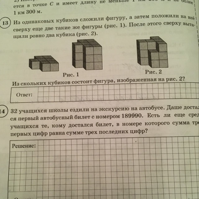 Из одинаковых кубиков сложили фигуру а затем положили на неё сверху ещё две такие же фигуры рисунок один после этого сверху вытащили ровно два кубика рисунок два