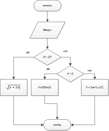 Построена блок-схема алгоритма с условиями