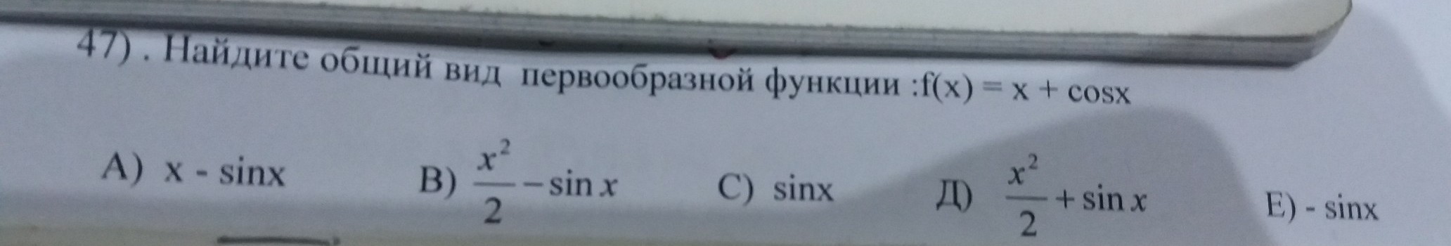 F'(x)=(x²/2)'+(sinx)'=1/2•2x+cosx=x+cosx