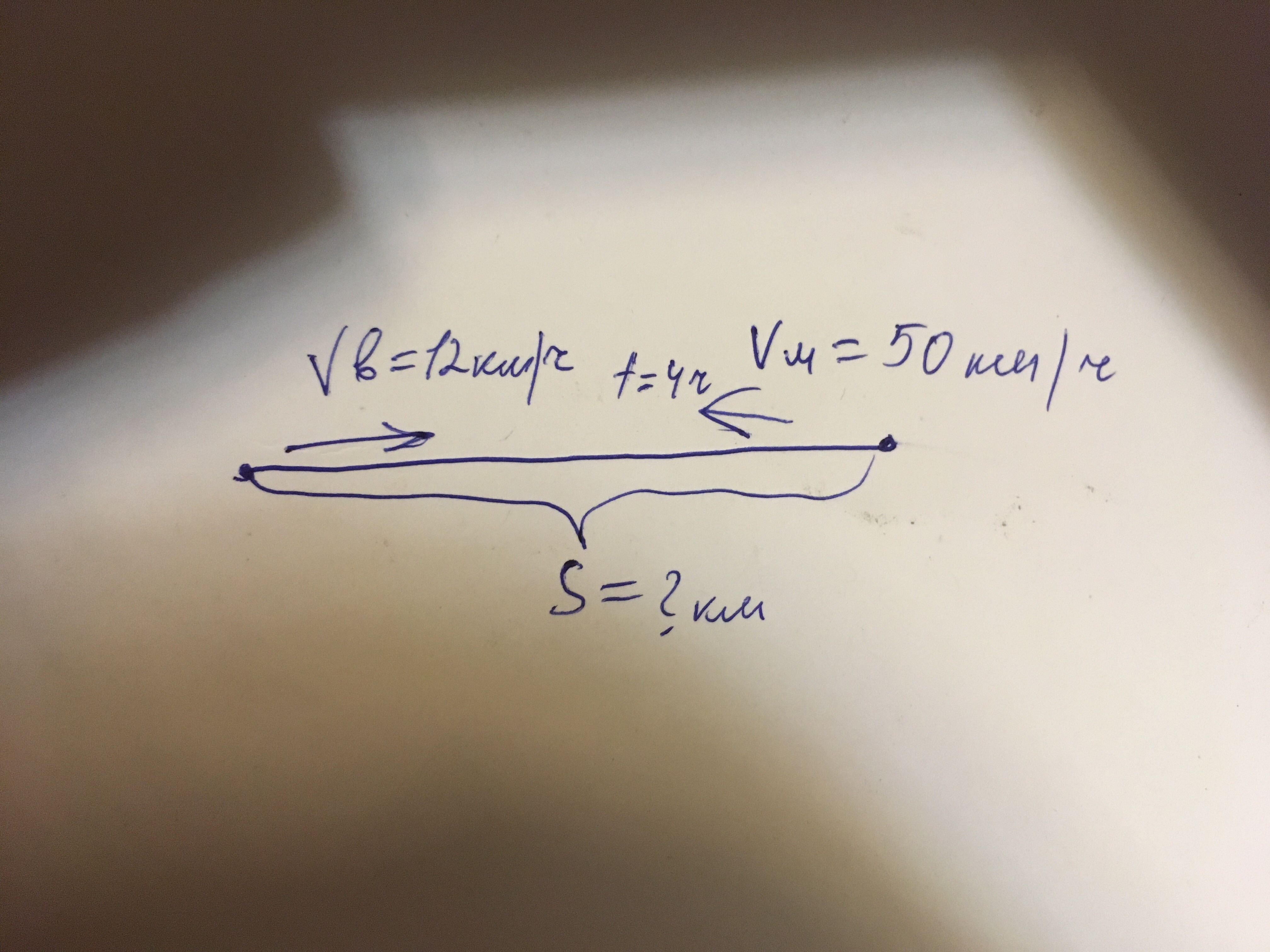Нарисуйте схему.Для задачи ,, Мотоциклист и велосипедист выйхали одновременно из двух деревень в одном направление. Скорость велосипедиста 12 км/ч, а скорость мотоциклиста 50 км/ч.Через 4 часа они встретятся.На каком расстояние находятся эти деревни?
