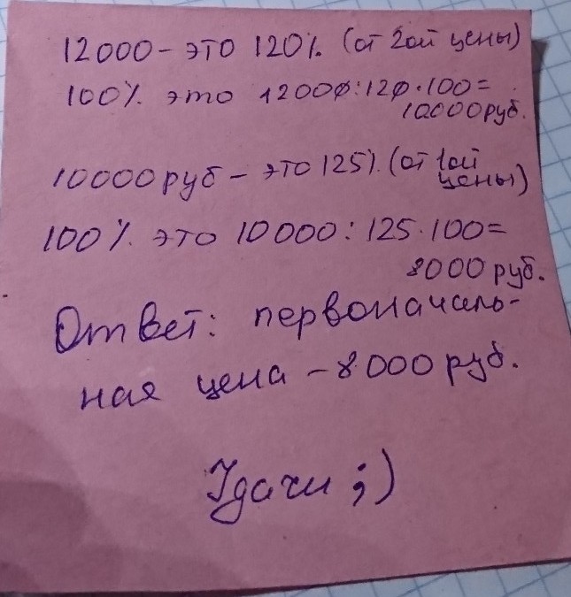 Цена на вальтрап сначала понизилась на 25%, после чего понизилась еще на 20%. Найдите разность между первоначальной и конечной ценой, если после всех превращений вальтрап стал стоить 12000 руб.