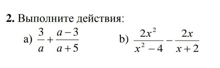 Выполните действия: а)3/а+а-3/а+5 и b) 2x²/x²-4-2x/x-2. Заранее спасибо)