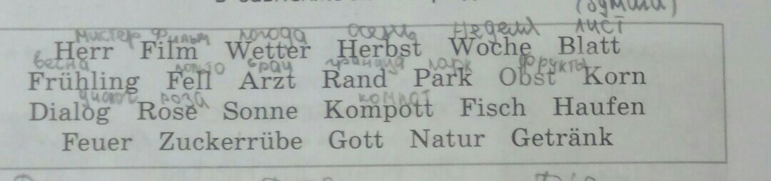 der Herr, der Film, der Herbst, der Frühling, der Arzt, der Rand, der Park, der Dialog, der Fisch, der Haufen, der Gott
